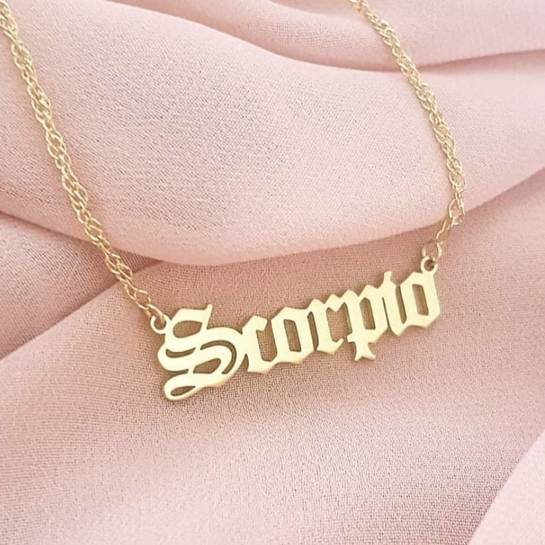 Krijg geluk met je sterrenbeeld ketting in oude Engelse schrift. Het is perfect om te combineren met andere kettingen: het is 36 cm lang met een verlenger van 5 cm. En het beste deel? Het is 100% waterdicht, omdat het gemaakt is van 18K goud of zilver plated roestvrij staal. Het is een perfect cadeau, omdat het waardevol en persoonlijk is.