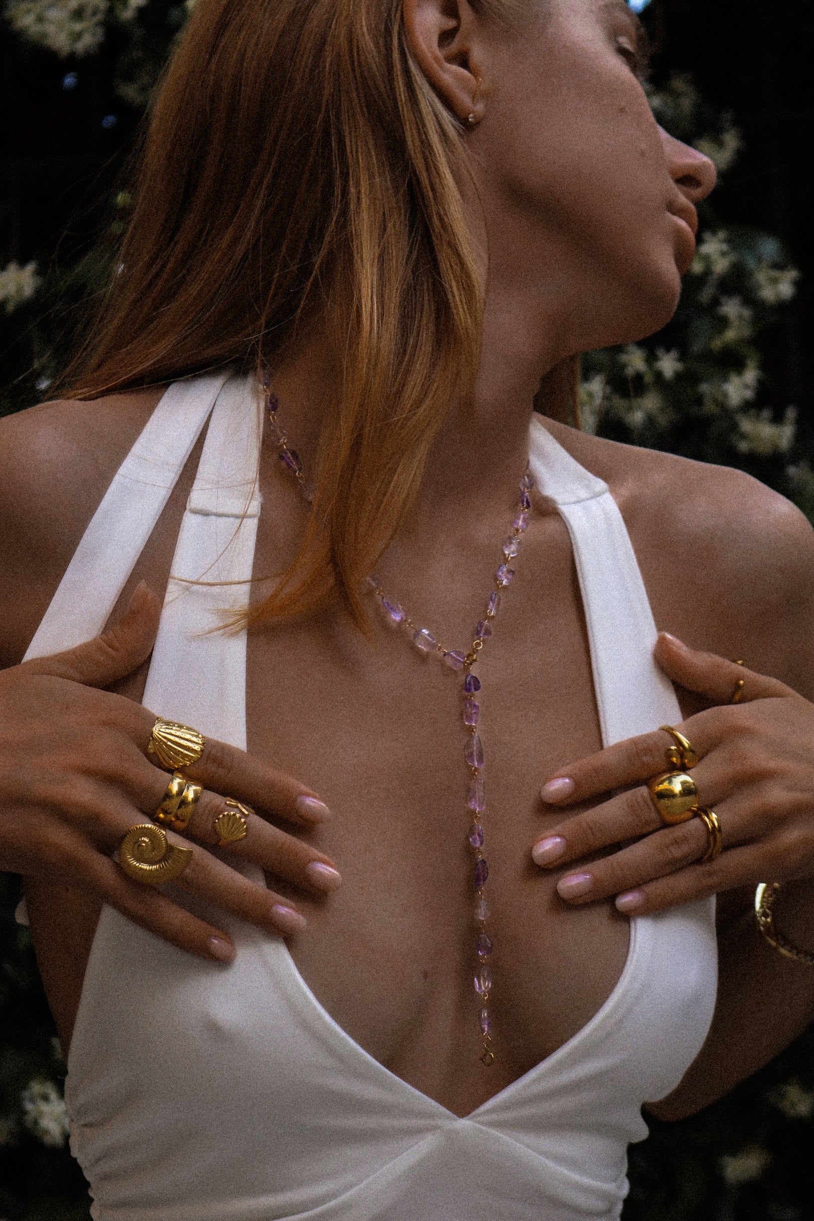 Y-vormige Natuurlijke Amethist Edelsteen Ketting