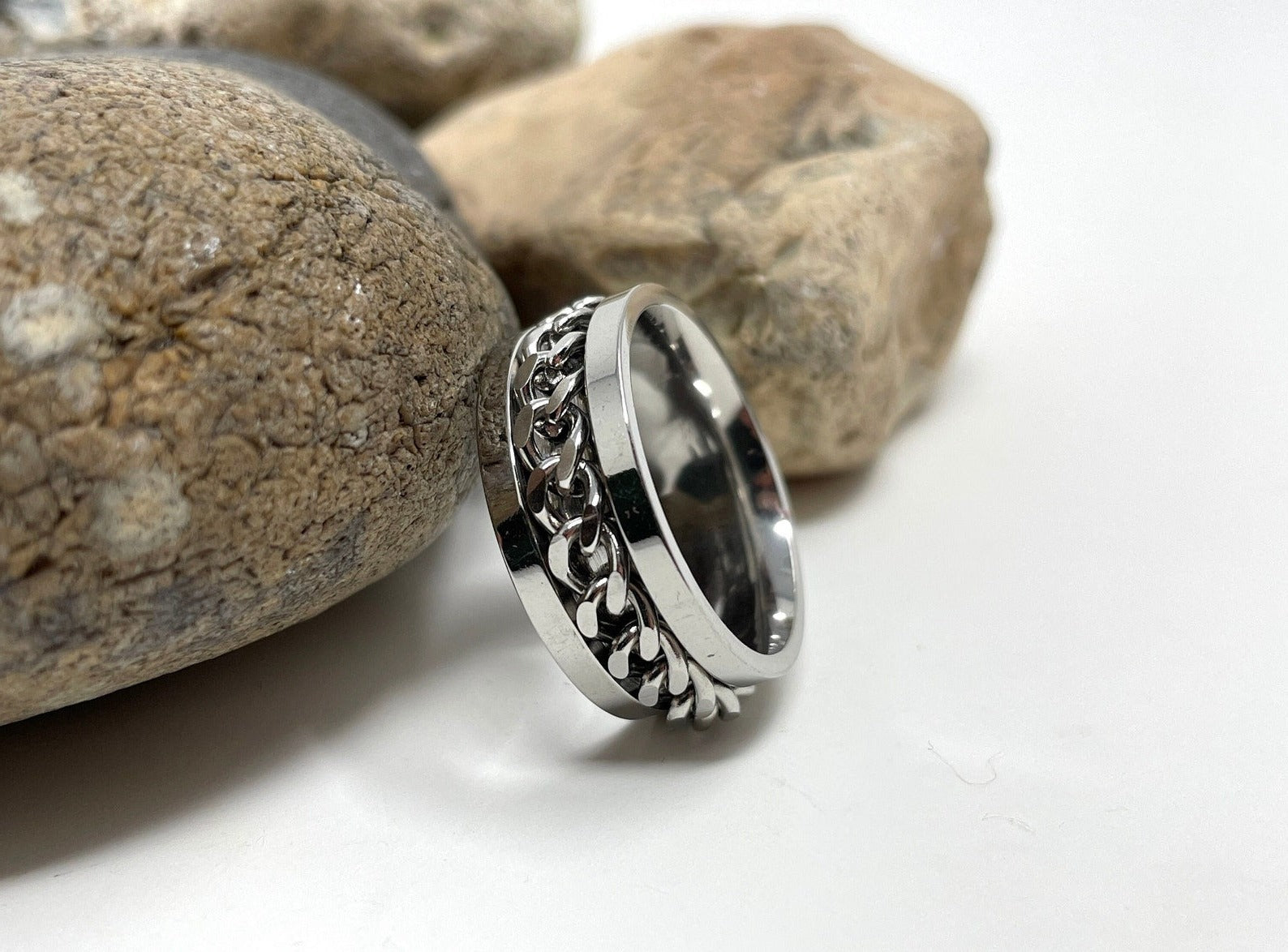 Onze waterdichte & stijlvolle spinner ring helpt je om je minder gestrest en meer in balans te voelen. Als je jezelf betrapt op het plukken aan je vingers, dan is deze ring voor jou gemaakt. Wanneer je je bezorgd of angstig voelt, kun je de ketting op de ring draaien om je aandacht onmiddellijk te ontspannen en je humeur te verbeteren. Het is perfect voor dagelijks gebruik omdat het gemaakt is van premium anti-tarnish materialen & is 100% waterdicht. De ring is unisex en ziet er geweldig uit bij zowel vrouwen als mannen. Onze draaiende fidget ring met kralen is een perfect cadeau voor iemand speciaal en wordt geleverd met prachtige cadeauverpakking.