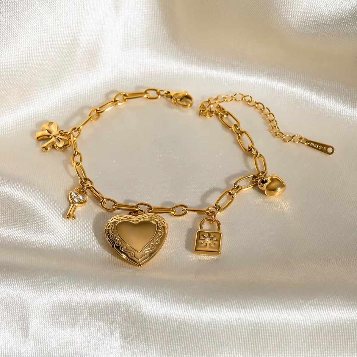Onze elegante 100% waterdichte fijne armband met bedeltjes ligt perfect om je pols voor de mooiste looks. Hij is gemaakt van premium roestvrij staal met 18k goud of zilver en is voorzien van prachtige zirkoon kristallen.
