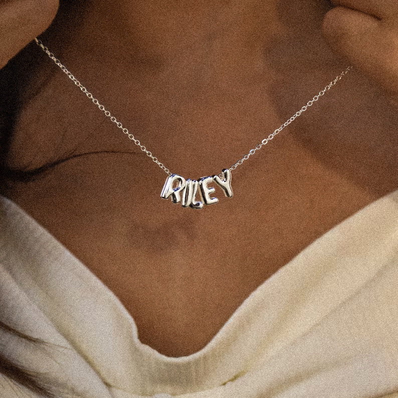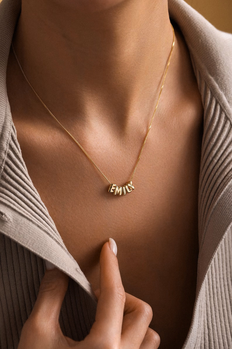 Elke 3D ballon naamketting is werkelijk uniek, persoonlijk en handgemaakt van waterbestendige hoogwaardige materialen. Maak dit uw kenmerkende alledaagse bubble naamketting of geef het als een onvergetelijk gepersonaliseerd cadeau voor uw vriendin, dochter of moeder. Voeg uw naam of de naam van uw geliefde, familielid of beste vriendin toe. Deze gepersonaliseerde bubble letter ketting is perfect om te layeren en voegt een kenmerkend element toe aan al uw outfits.