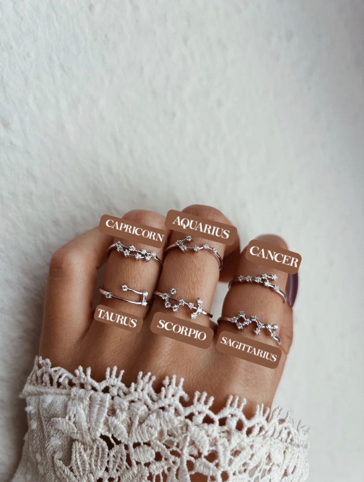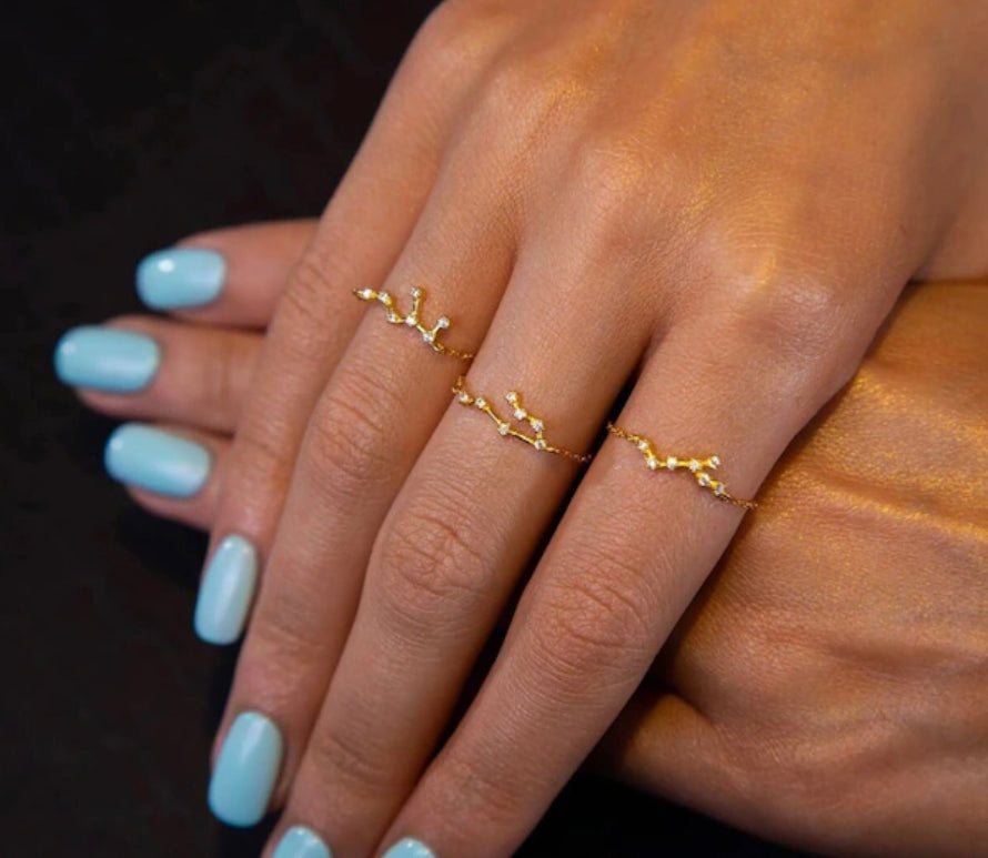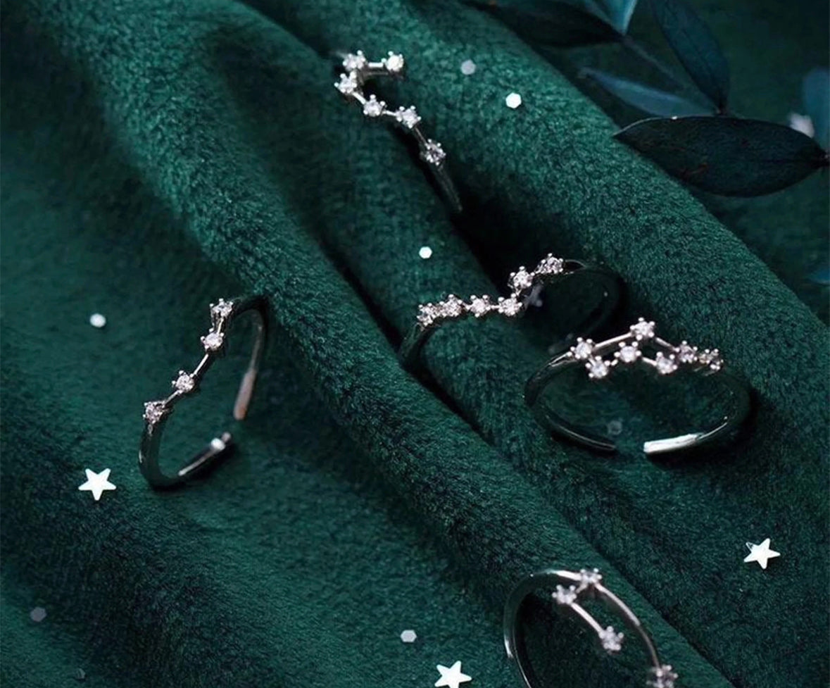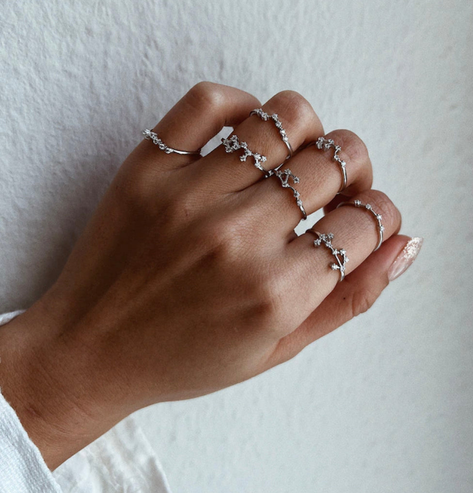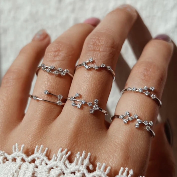 Word gelukkig met deze verfijnde en delicate sterrenbeeld ring gemaakt van puur 925 Sterling Zilver. Het is versierd met prachtige kristallen en is perfect om te stapelen met andere ringen. Het voegt een elegante, luxe draai toe aan elke outfit en is een perfect cadeau, omdat het kostbaar en persoonlijk is. En het beste deel? Het is 100% waterdicht en behoudt zijn kleur voor altijd.