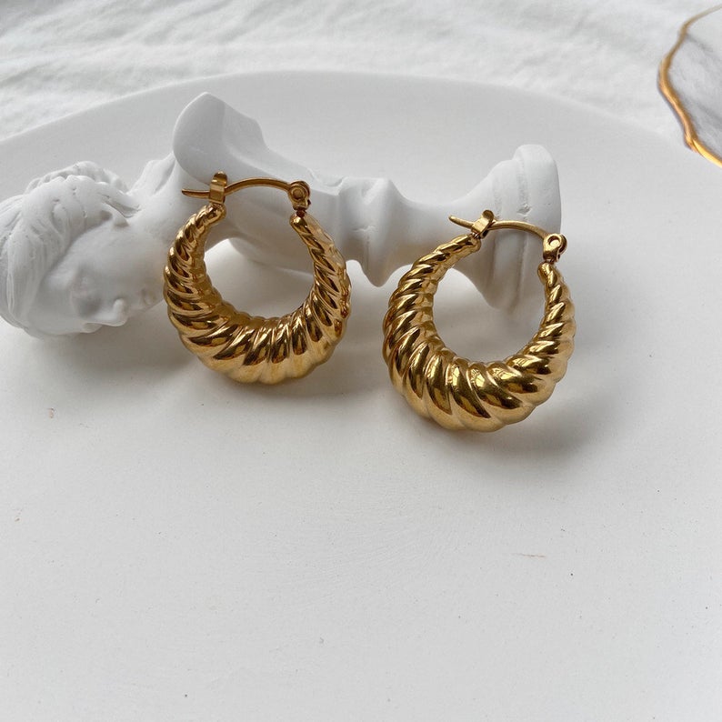 Deze elegante 100% waterdichte croissantvormige oorbellen zien er luxueus en verfijnd uit. Val op bij elke gelegenheid, of je nu bubble tea gaat halen met een vriend of naar school gaat met onze 18K vergulde dikke hoepel oorbellen van roestvrij staal. Ze zien er geweldig uit in combinatie met andere oorbellen of alleen. Ze worden geleverd in schattige paarse verpakking en zijn een perfect cadeau voor iemand speciaal.