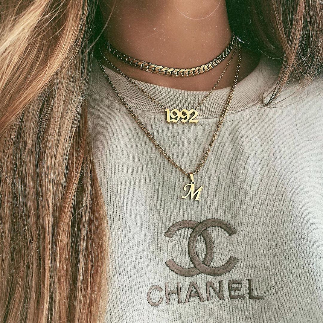 Krijg geluk met je gepersonaliseerde jaarketting in Gotische schrift. Het is perfect om te combineren met andere kettingen: het is 35 cm lang met een 5 cm verlenger. En het beste deel? Het is 100% waterdicht, omdat het gemaakt is van 18K goud of zilver verguld roestvrij staal. Het is een perfect cadeau, omdat het waardevol en persoonlijk is.