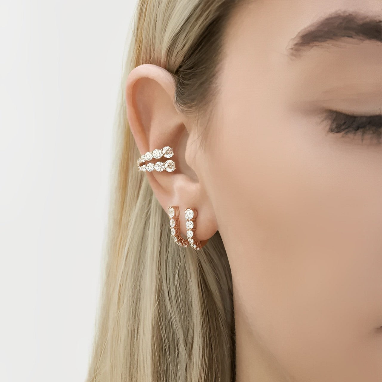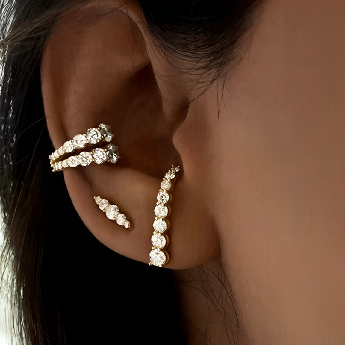 Ga op een reis naar de sprankelende wereld! Deze delicate & elegante waterdichte oor cuffs maken ons blij met slechts één blik erop. Ze hebben 2 rijen van schitterende bolvormige zirkonia kristallen en zijn perfect voor dagelijks gebruik. Ze zijn waterdicht, gemaakt van premium 925 sterling zilver, verguld met echt goud of rhodium.