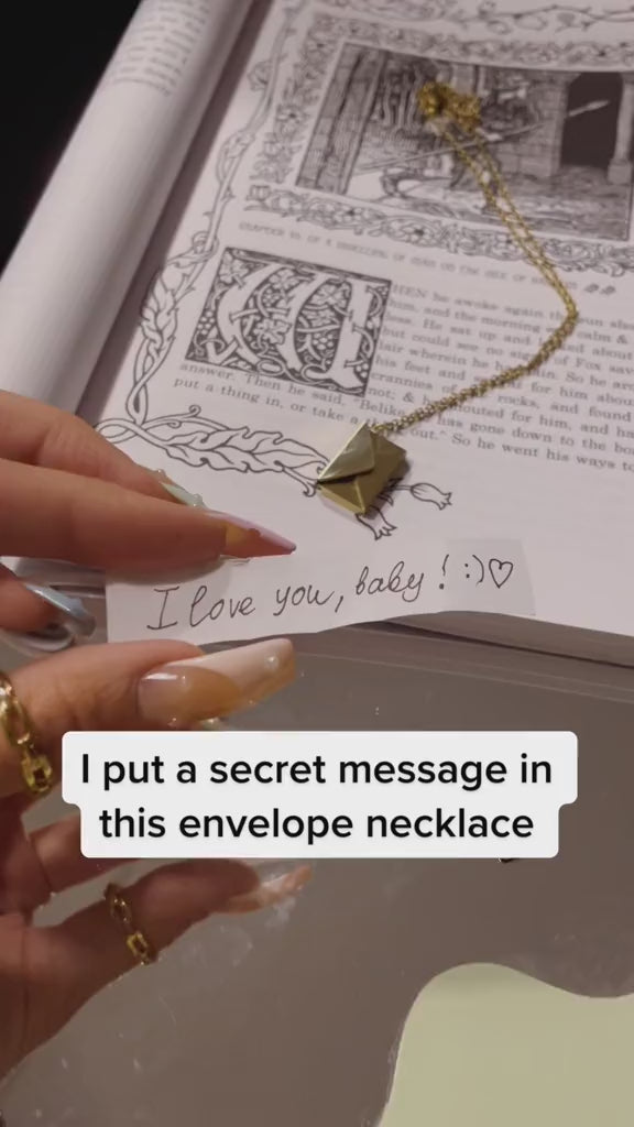 Onze elegante envelop ketting is 100% waterdicht en past perfect bij je geheime liefdesbrief. Het is een perfect cadeau voor je speciale persoon, of het nu je geliefde of je vriend is. Het heeft een klein magnetisch slot en kan gemakkelijk worden geopend en gesloten. Elke envelop bevat een klein kaartje met de gravure 'Hou van jou', maar je kunt er ook een kleine foto of notitie van jezelf in doen - wees creatief! De ketting ligt perfect over de halslijn en wordt een favoriete dagelijkse sieradenstuk.