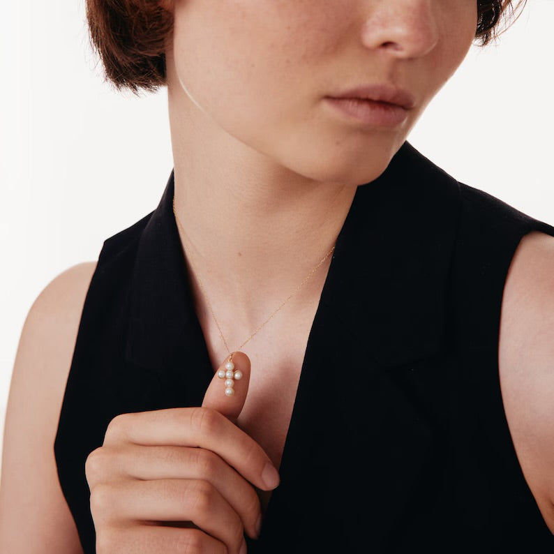 Onze unieke handgemaakte parel kruisketting is anti-aanslag, verguld over roestvrij staal en esthetisch aantrekkelijk. Hij valt perfect over uw decolleté voor de mooiste looks. Perfect om te layeren, deze ketting ziet er prachtig uit wanneer gedragen met elke ketting of hanger.