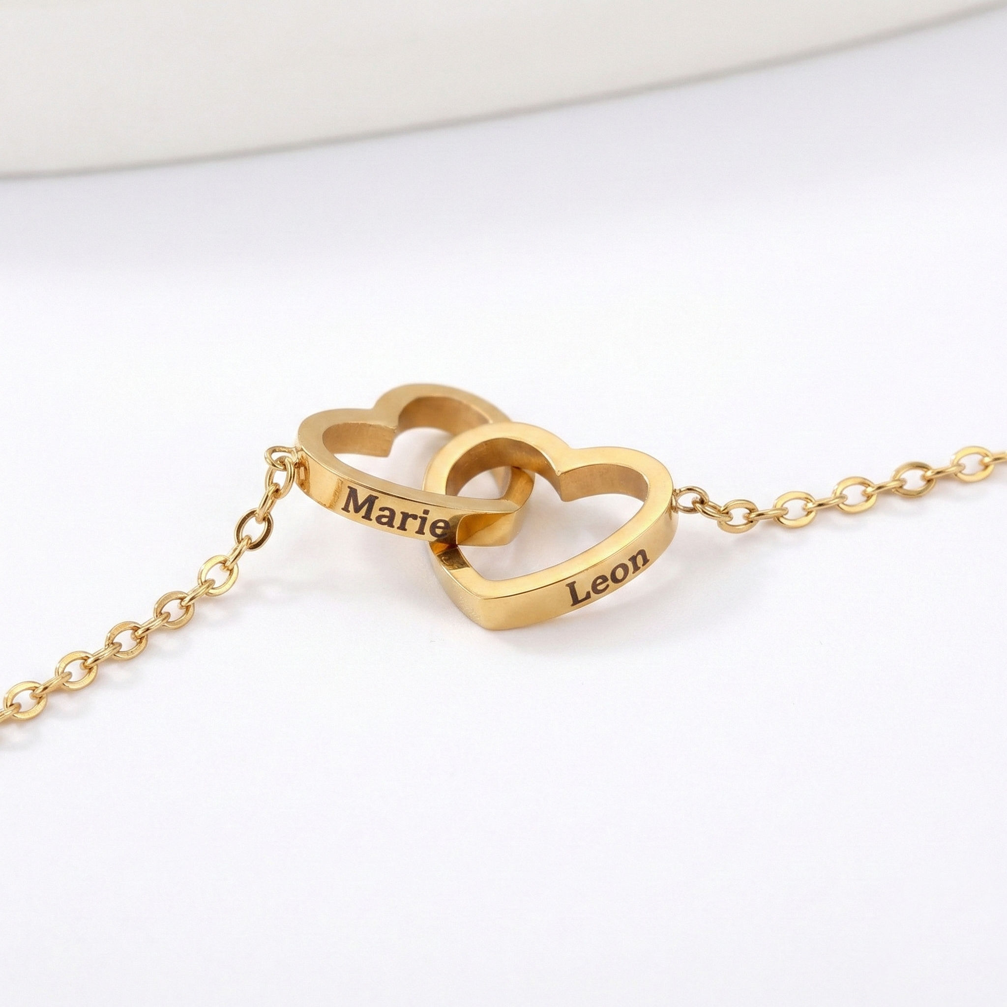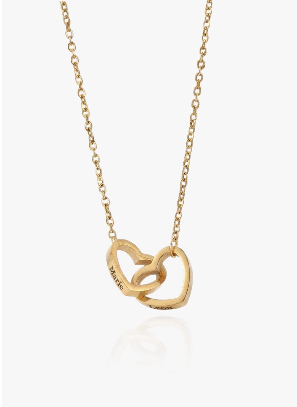 Elke ketting met gekoppelde harten is werkelijk uniek, persoonlijk en handgemaakt van waterbestendige hoogwaardige materialen. Maak dit uw kenmerkende alledaagse ketting of geef het als een onvergetelijk Valentijnsdag- of jubileumcadeau voor uw vriendin of vrouw. Voeg uw naam en de naam van uw geliefde toe, om voor altijd op de harten te laten graveren. Dit delicate sieraad is perfect om te combineren en voegt een kenmerkend element toe aan elke outfit.