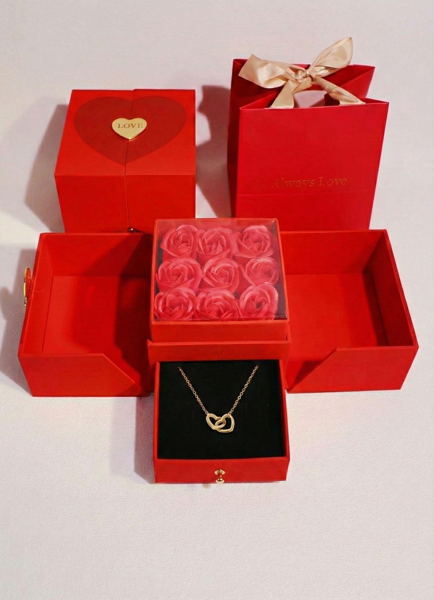 De rode rozenbox wordt meegeleverd met uw bestelling. De huidige productietijd van dit product is 1-3 werkdagen, gegraveerd in ons atelier in Amsterdam.
