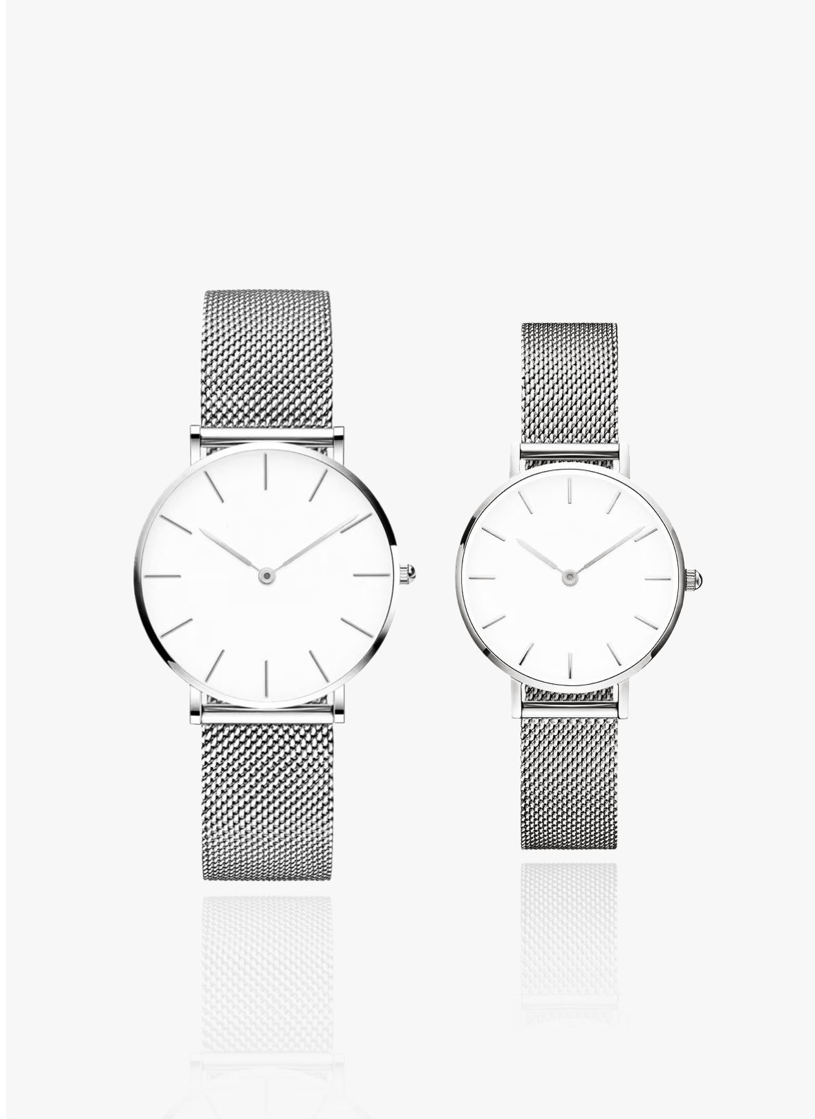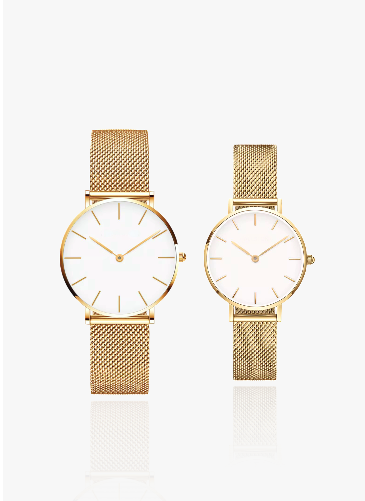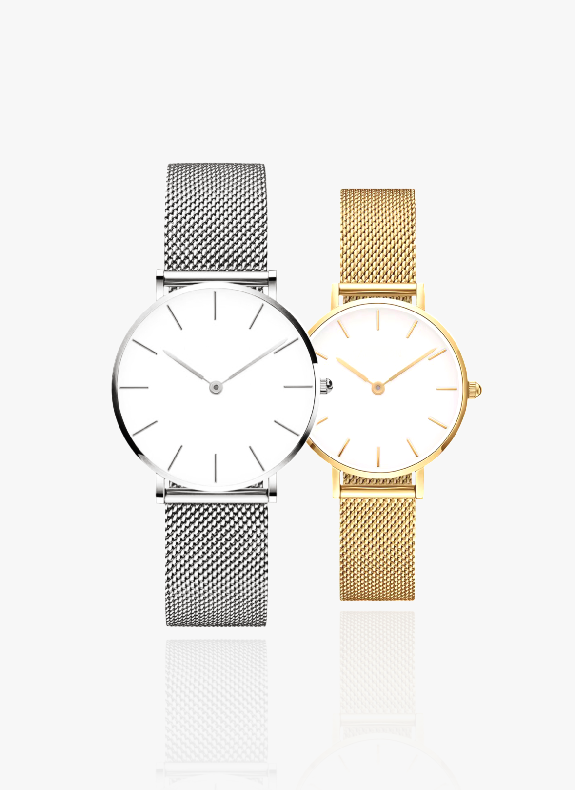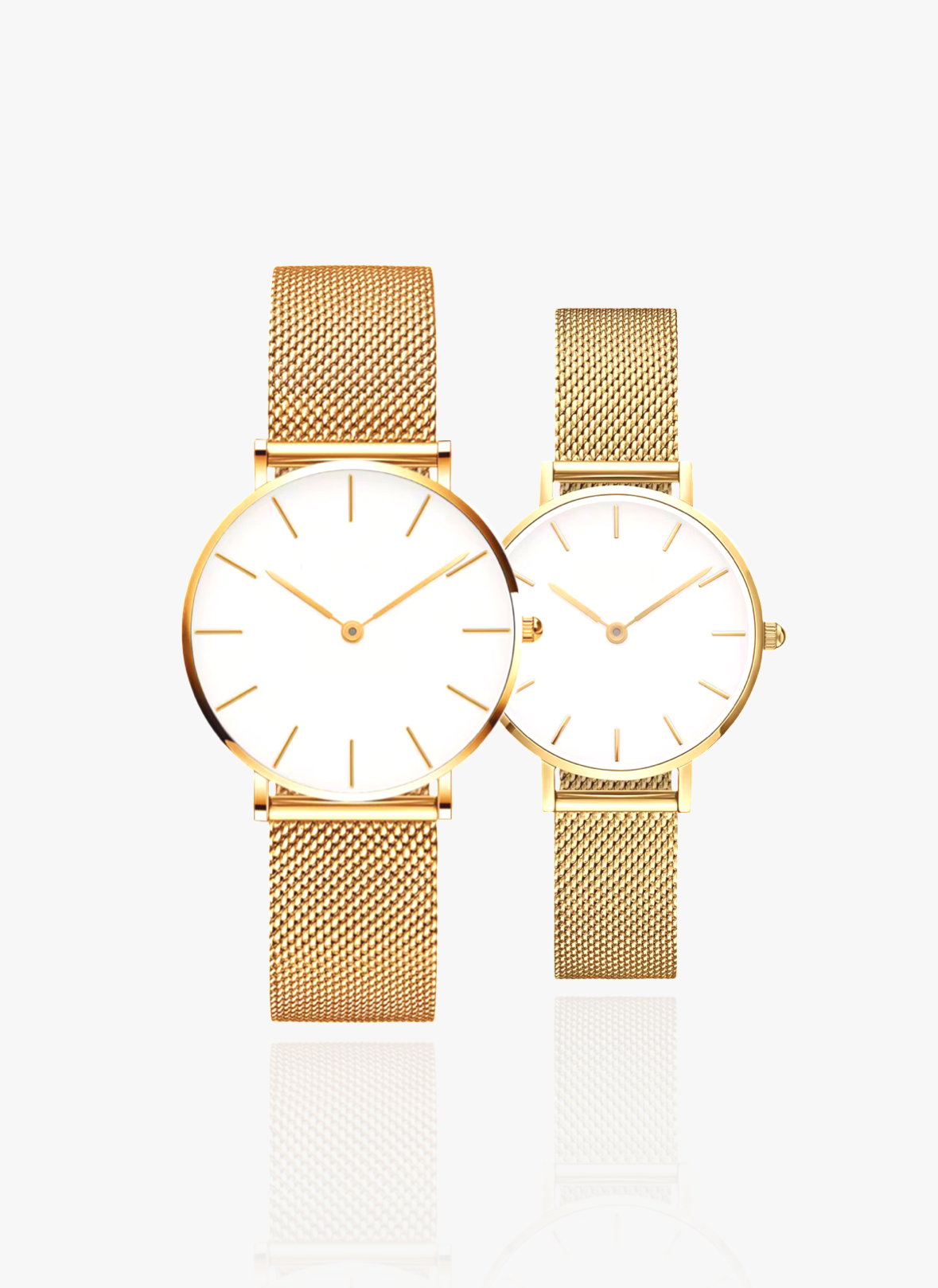 Eer uw verbinding met een gepersonaliseerde horlogeset voor koppels, individueel gegraveerd in ons atelier in Amsterdam om te weerspiegelen wat uw relatie speciaal maakt. Ontworpen voor alledaagse elegantie, elk uurwerk is waterdicht en anti-aanslag, zodat het jarenlang zijn glans behoudt. De verstelbare, uniseks pasvorm zorgt ervoor dat beide partners hun horloge met comfort en vertrouwen dragen.