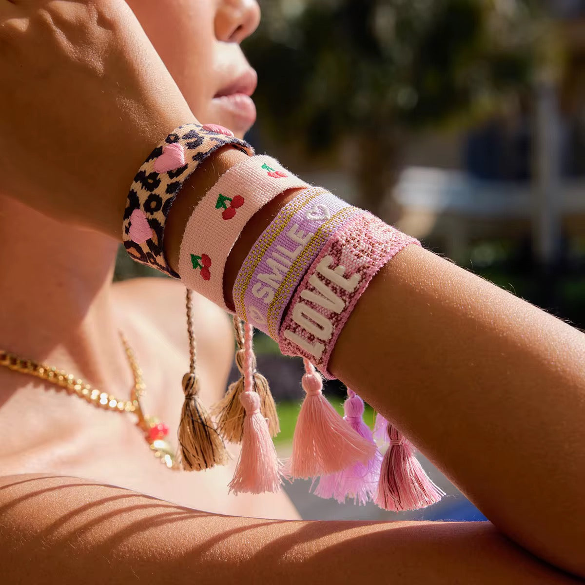 Voeg een vleugje liefde toe aan je look met deze handgeweven, geborduurde Liefde armband. Deze stoffen armband is een perfecte aanvulling op je zomer- of vakantie-outfits. De armband heeft een verstelbare maat die iedereen past.