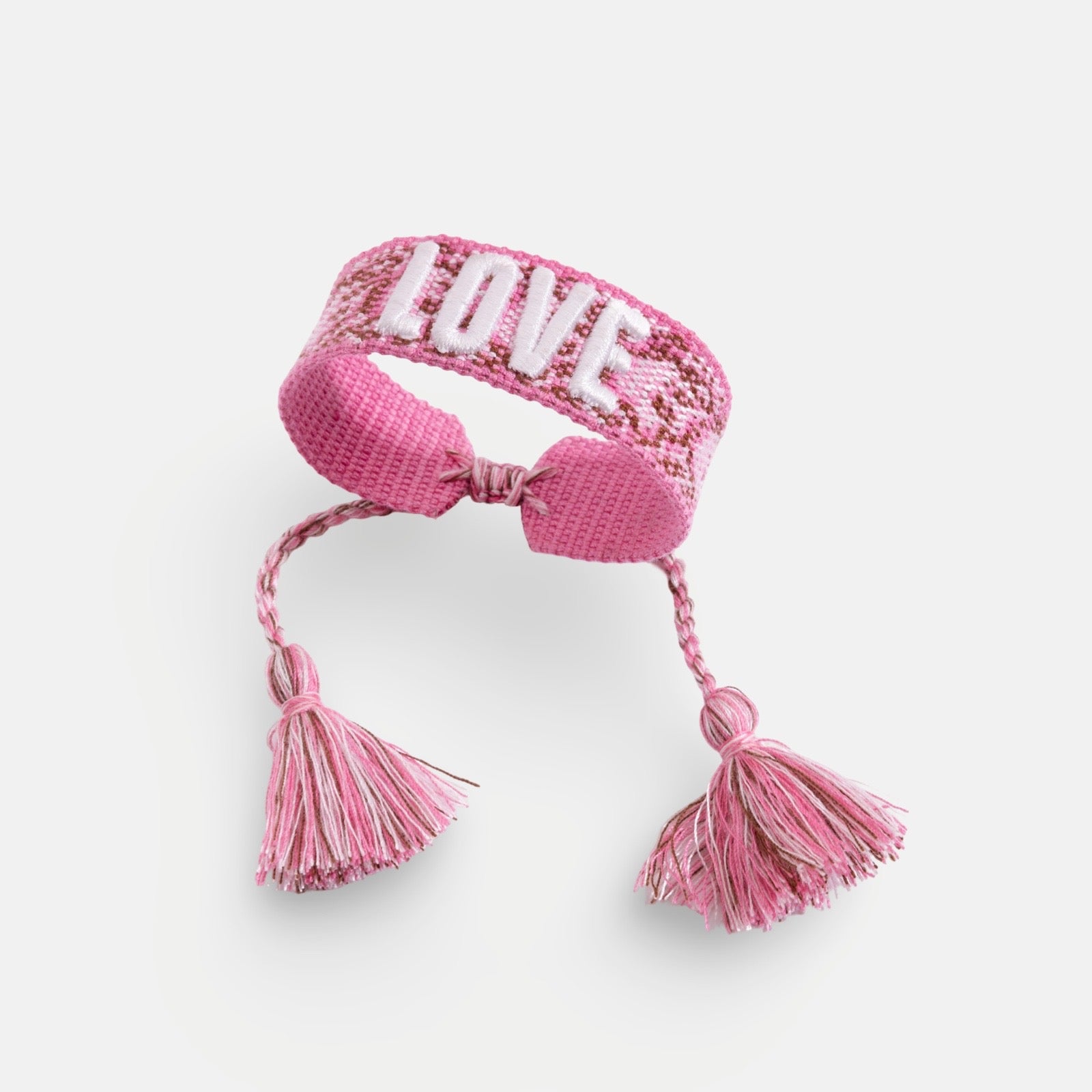 Voeg een vleugje liefde toe aan je look met deze handgeweven, geborduurde Liefde armband. Deze stoffen armband is een perfecte aanvulling op je zomer- of vakantie-outfits. De armband heeft een verstelbare maat die iedereen past.