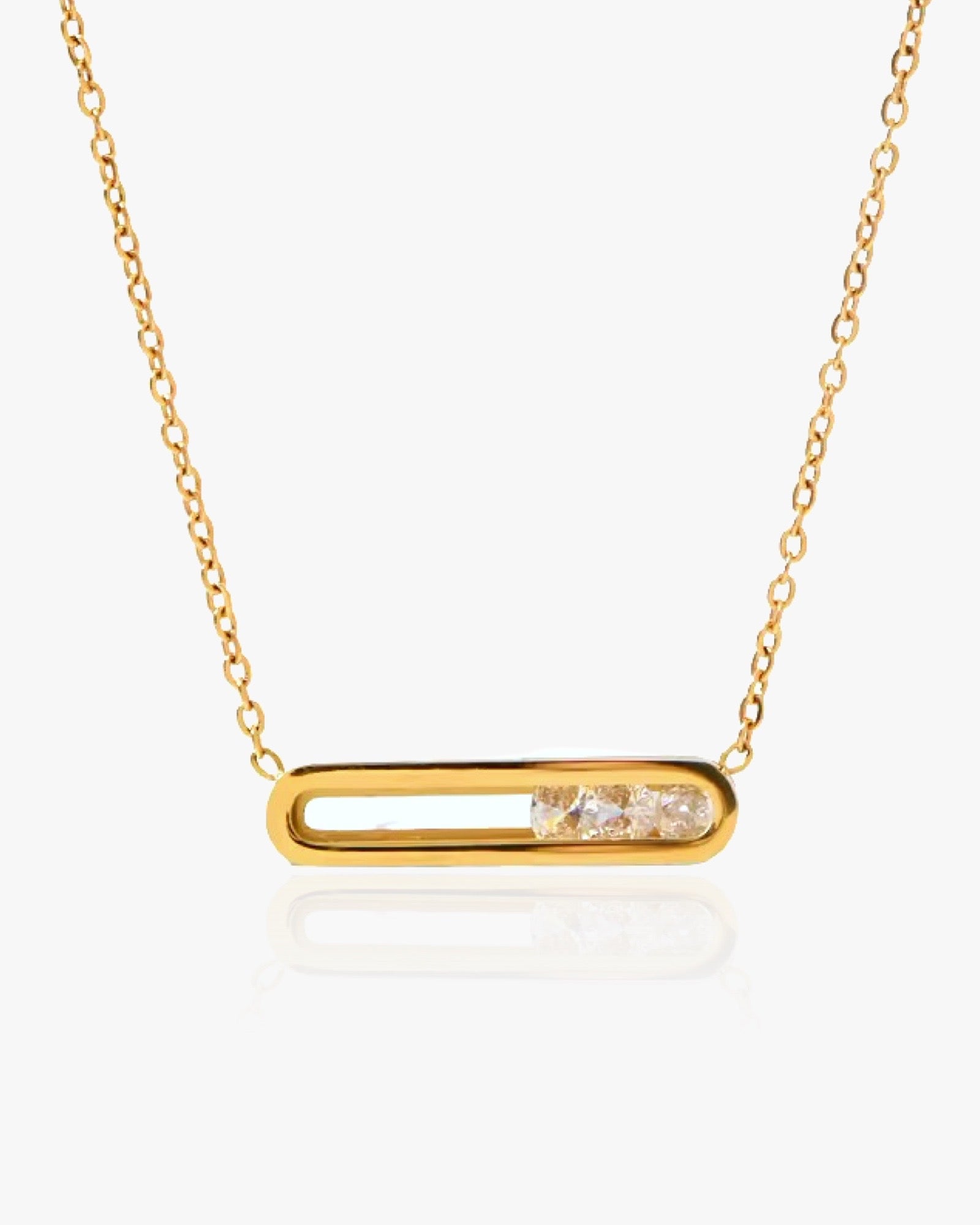 Onze delicate halsketting met 3 schuifkristallen valt perfect over uw decolleté voor de meest elegante look. Perfect om te combineren, deze ketting kan op verstelbare lengte worden gedragen. En het beste deel? Het is 100% waterdicht, omdat het is gemaakt van 18K verguld / verzilverd roestvrij staal.