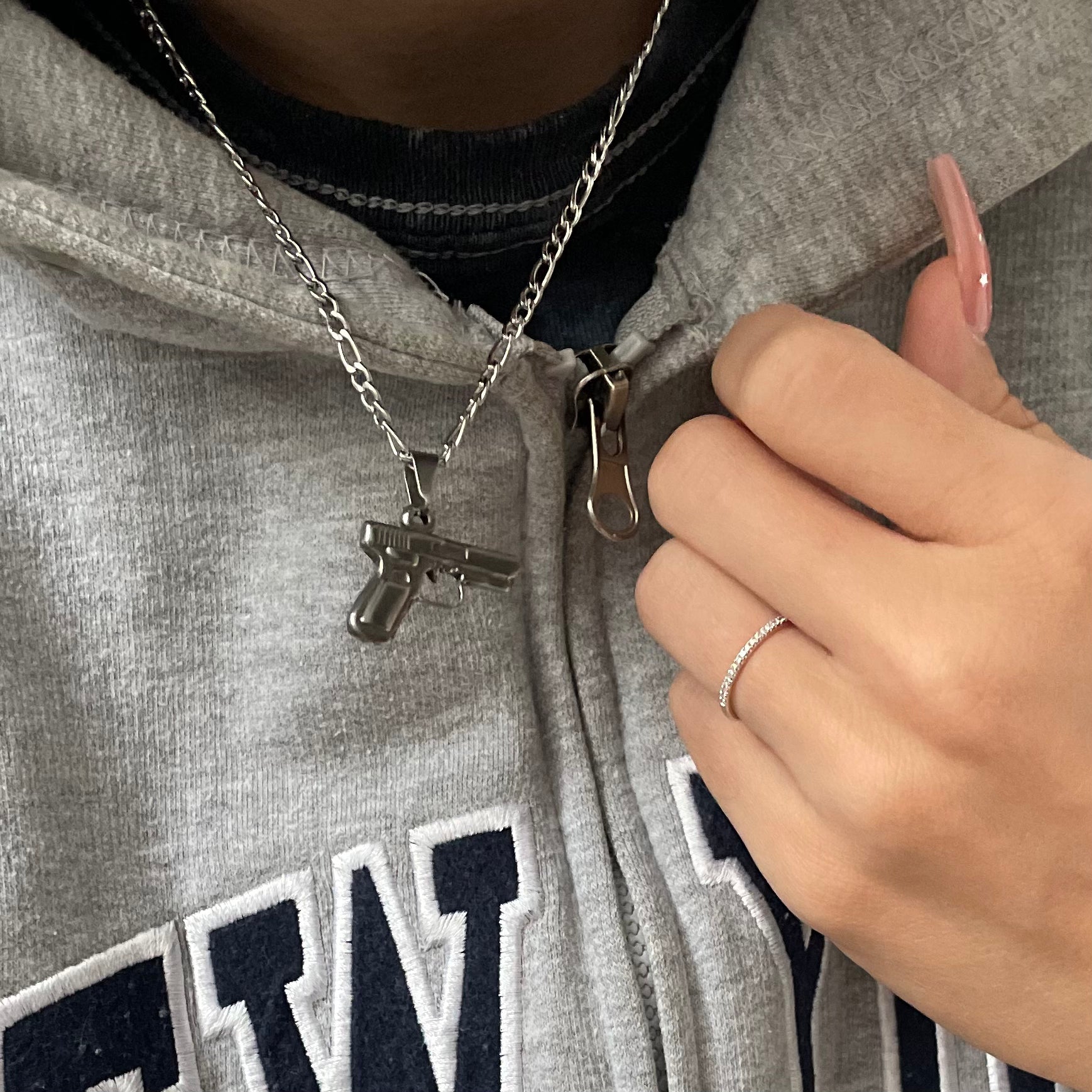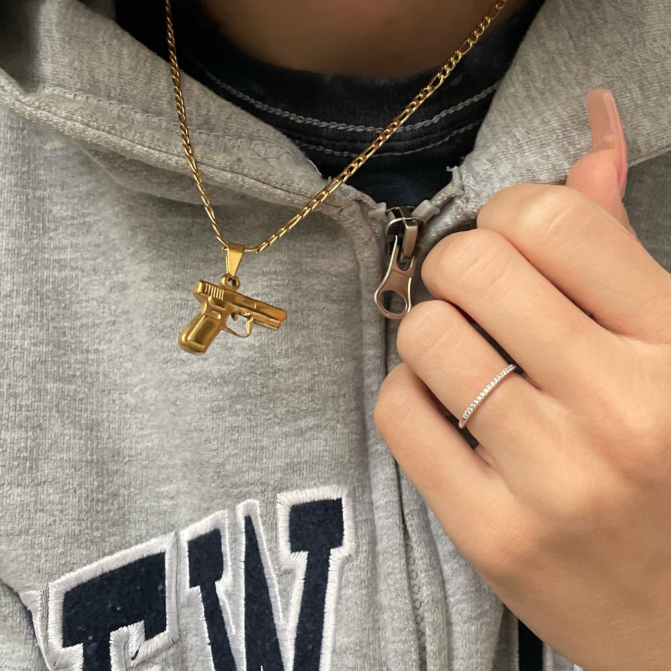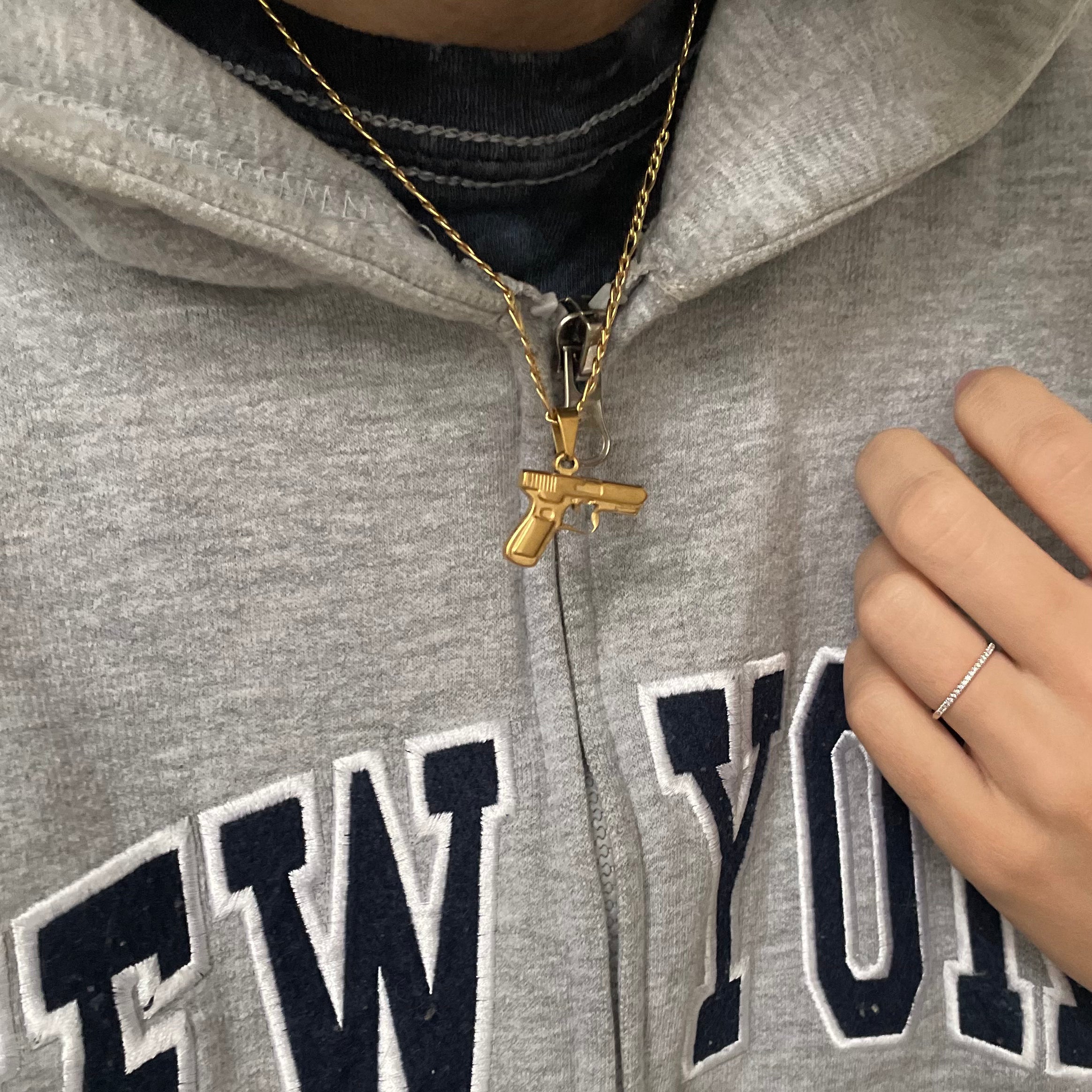 Onze waterdichte unisex gun halsketting ligt perfect over je halslijn en herinnert je altijd aan het gangsta-leven. Het heeft een unieke figaro-ketting en is verkrijgbaar in goud & zilver. Geweldig voor het lagen, deze 40 + 6 cm hanger halsketting ziet er prachtig uit wanneer hij wordt gelaagd met andere kettingen. En het beste deel? Het is 100% waterdicht, omdat het is gemaakt van 18K goud / zilver verguld roestvrij staal.