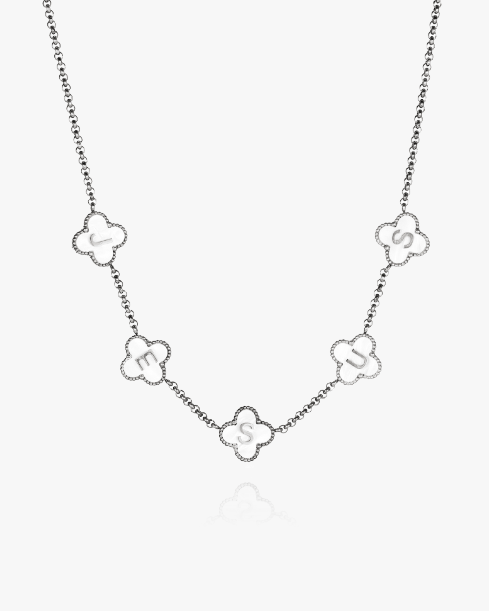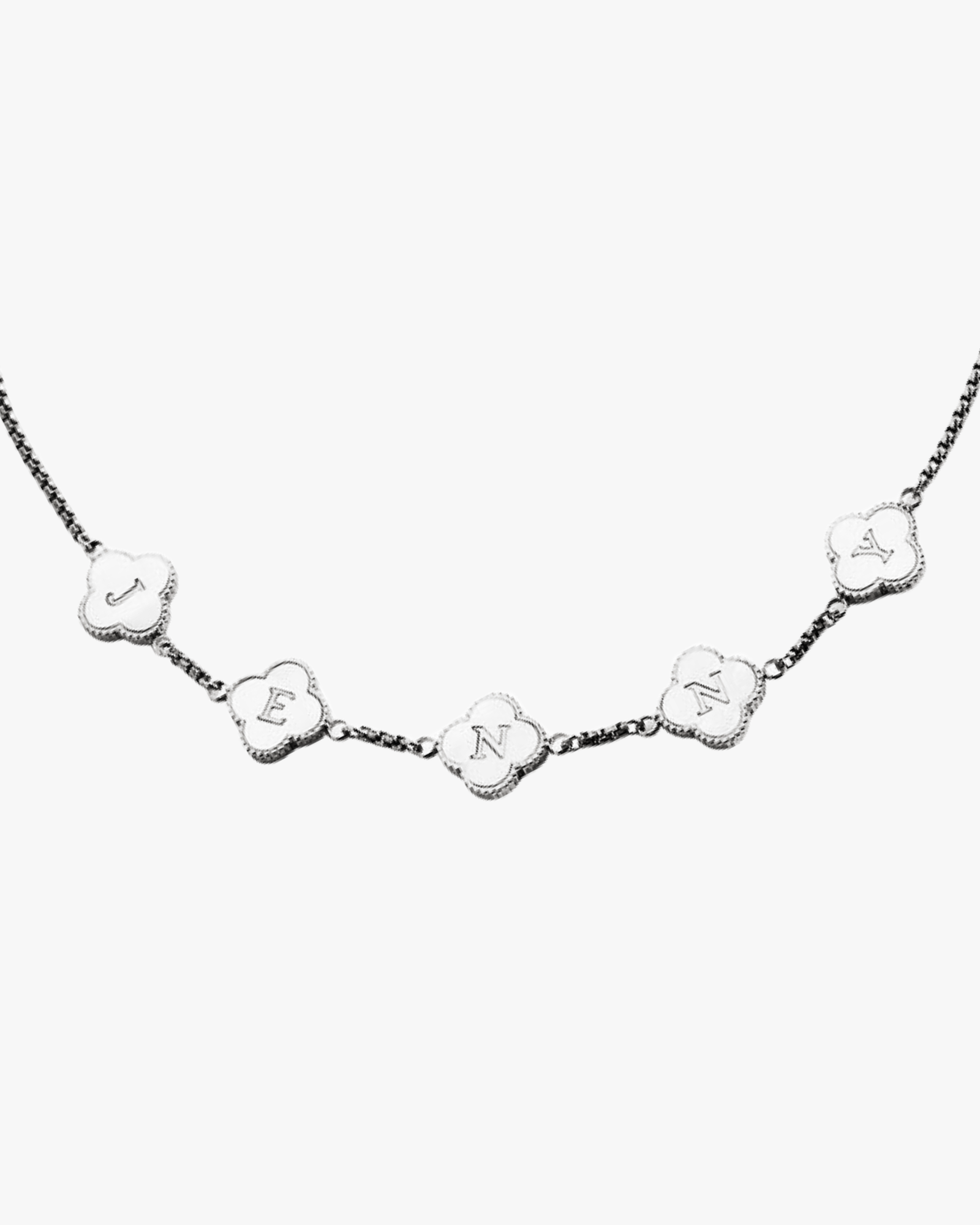 Elk sieraad is werkelijk uniek, persoonlijk en handgemaakt van waterbestendige hoogwaardige materialen. Maak dit uw kenmerkende klavertje vier naamketting voor dagelijks gebruik of geef het als een onvergetelijk gepersonaliseerd cadeau voor uw vriendin, dochter of moeder. Voeg uw naam of de naam van uw geliefde, familielid of beste vriendin toe. Deze gepersonaliseerde klavertje vier ketting is perfect om te combineren en voegt een uniek element toe aan al uw outfits.