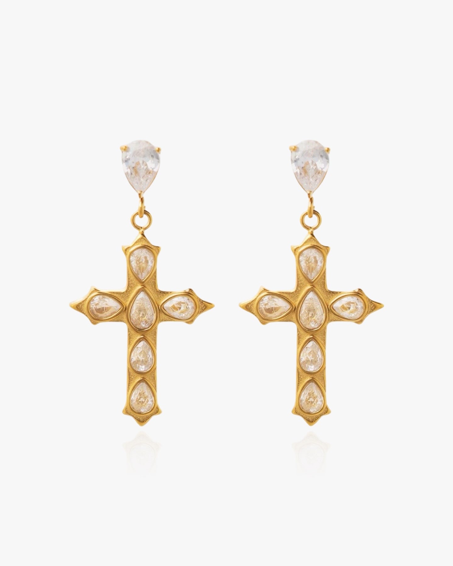 Deze verfijnde, gegoten oorbellen in kruisvorm zijn een perfect accessoire om je looks te upgraden. Ze zijn licht en ontworpen voor dagelijks gebruik omdat ze 100% waterdicht zijn. Ze zijn verkrijgbaar in goud- of zilverkleurige afwerking en passen prachtig bij al je outfits. Mooie sieraden om mee te nemen op vakantie, voor de lente- en zomerseizoenen.