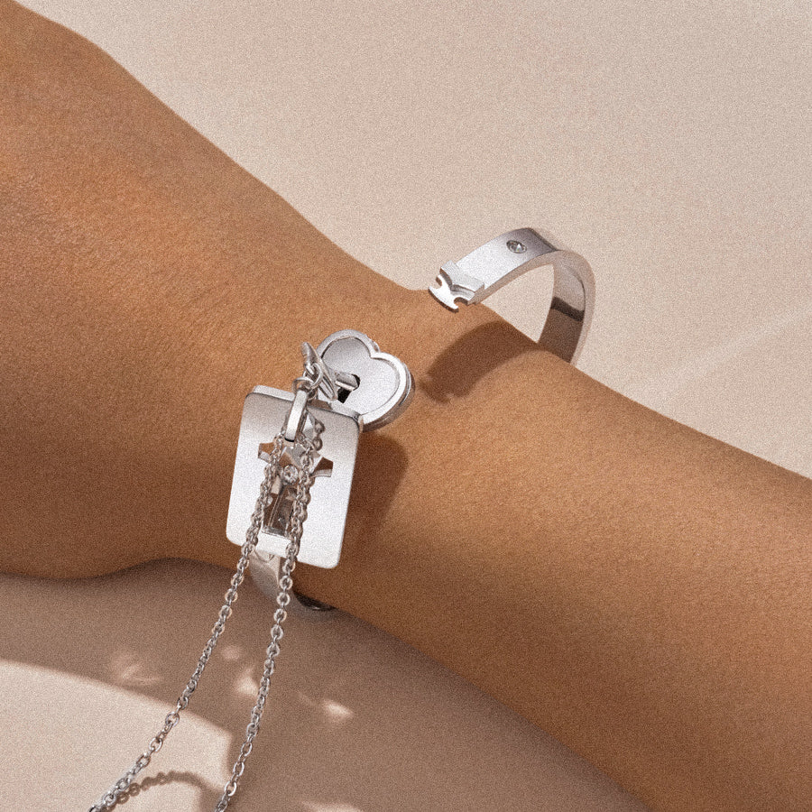 • Je ontvangt 2 items, een slotarmband en een sleutelketting