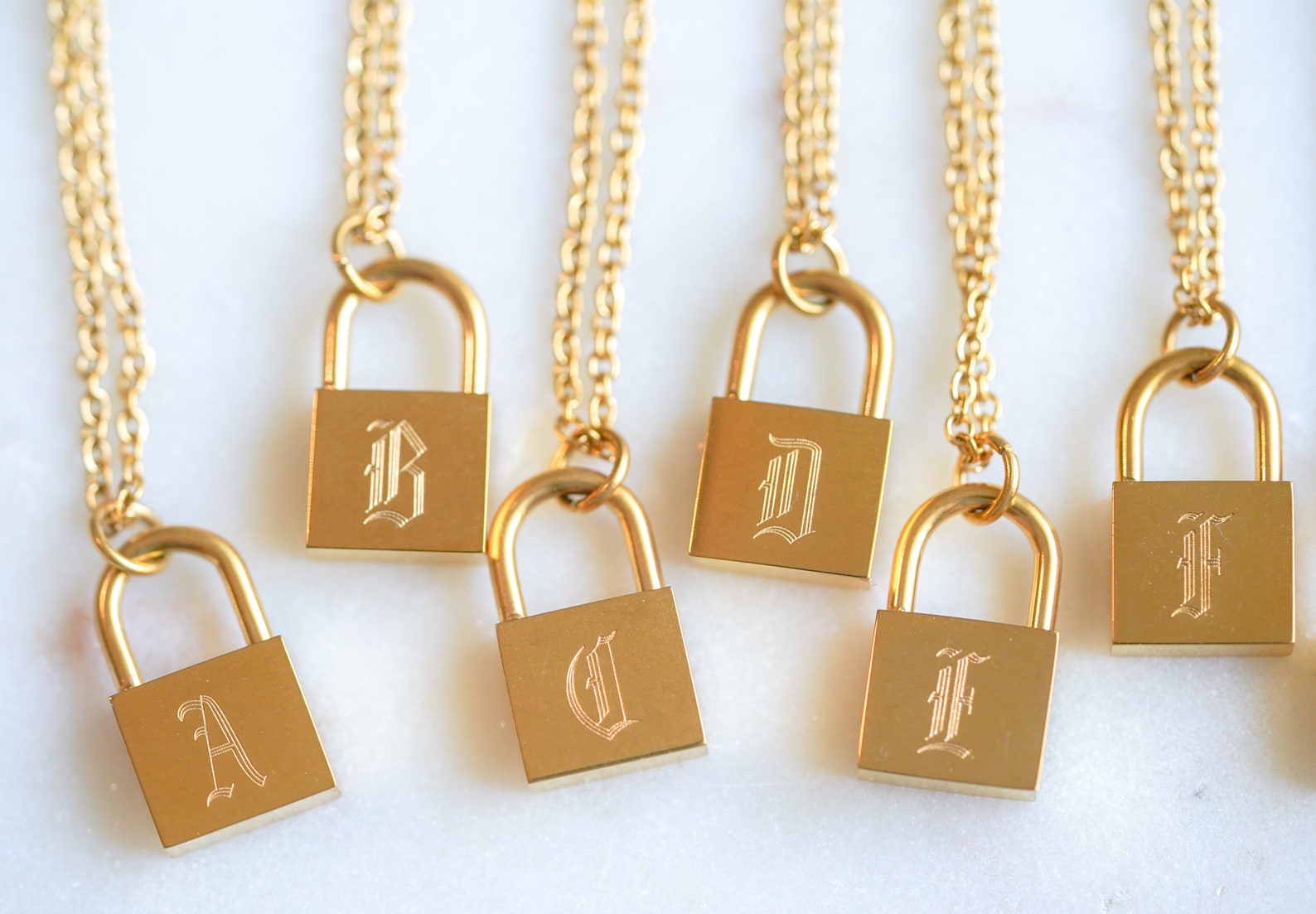 Wat is een betere manier om je liefde te tonen en persoonlijk te zijn dan met onze 18K gouden gegraveerde slotketting? Het heeft een hoogglanzend gouden of zilveren plated roestvrijstalen slot aan een gouden of zilveren plated ketting die net onder je nek hangt en je look onmiddellijk een chique upgrade geeft. Het is een perfect cadeau, omdat het kostbaar en memorabel is.