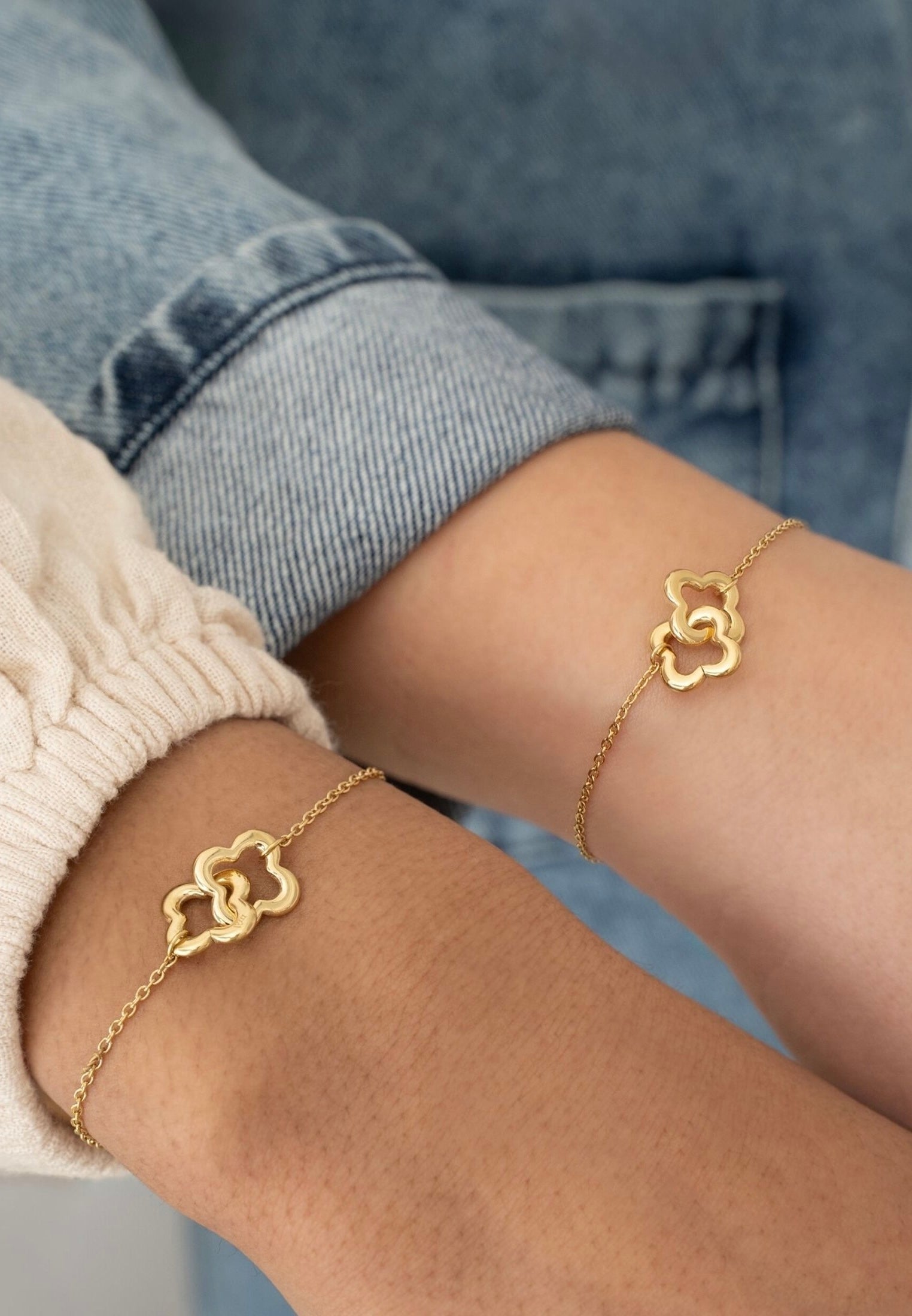 Onze elegante , 100% waterdichte, klavertjes armband past perfect om je pols en creëert de mooiste looks. Hij is gemaakt van roestvrij staal. Verguld met 18-karaats goud of witgoud en voorzien van een prachtig verbonden klavertje, symbool voor geluk en liefde tussen twee zielsverwanten. Bestel 2 stuks als bijpassende armbandenset. Deze armbandenset is een geweldig cadeau voor je vriendin, moeder of zus voor Kerstmis of een verjaardag.