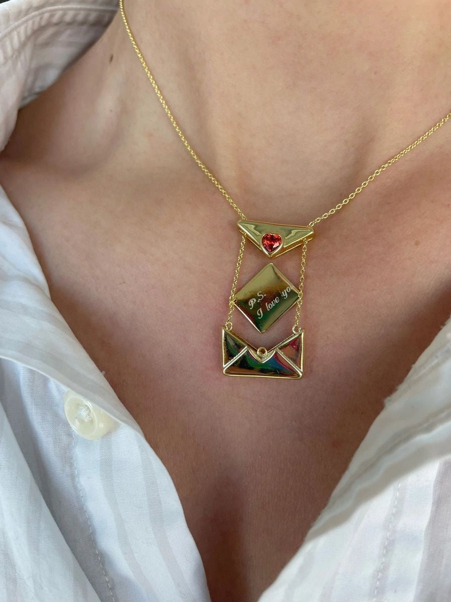 MEMORY - Op maat gegraveerde liefdesbrief envelop ketting