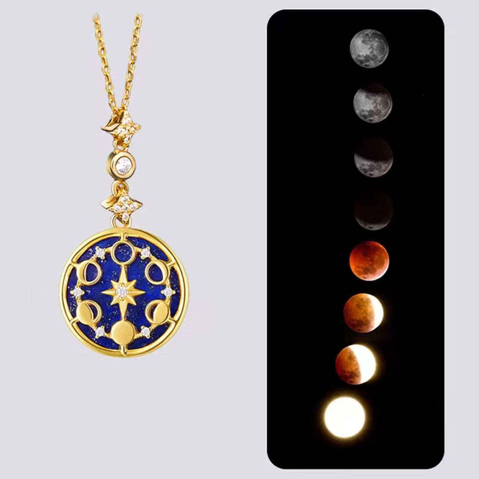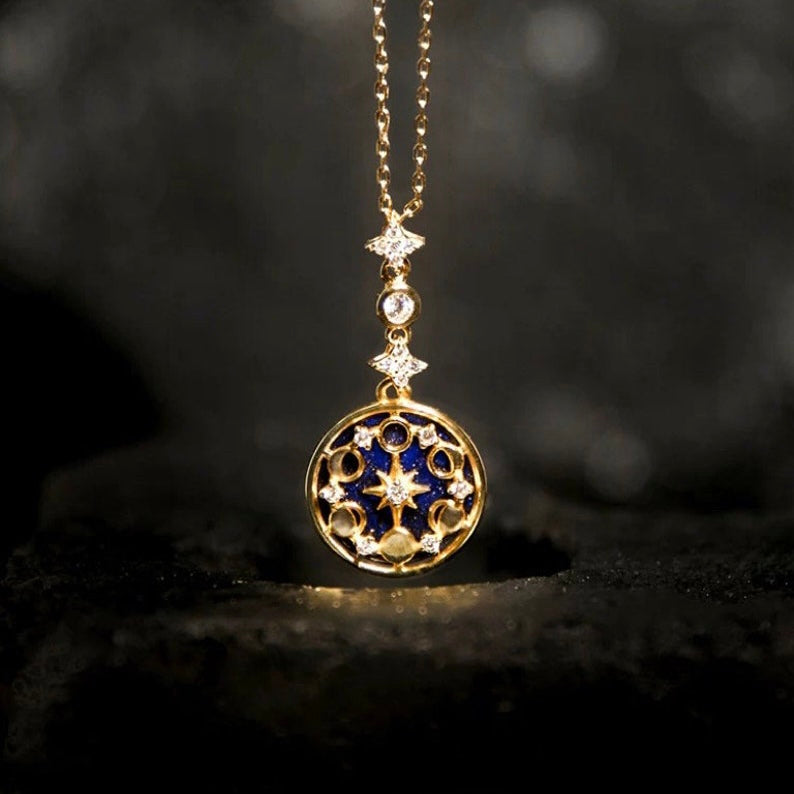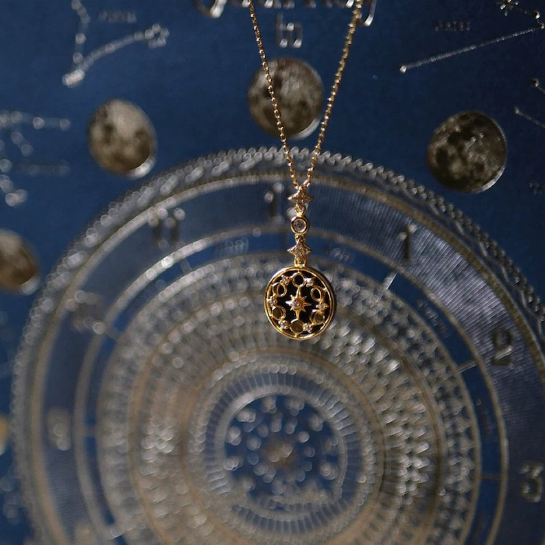 925 Sterling Zilver Zandsteen Maanfasen Ketting