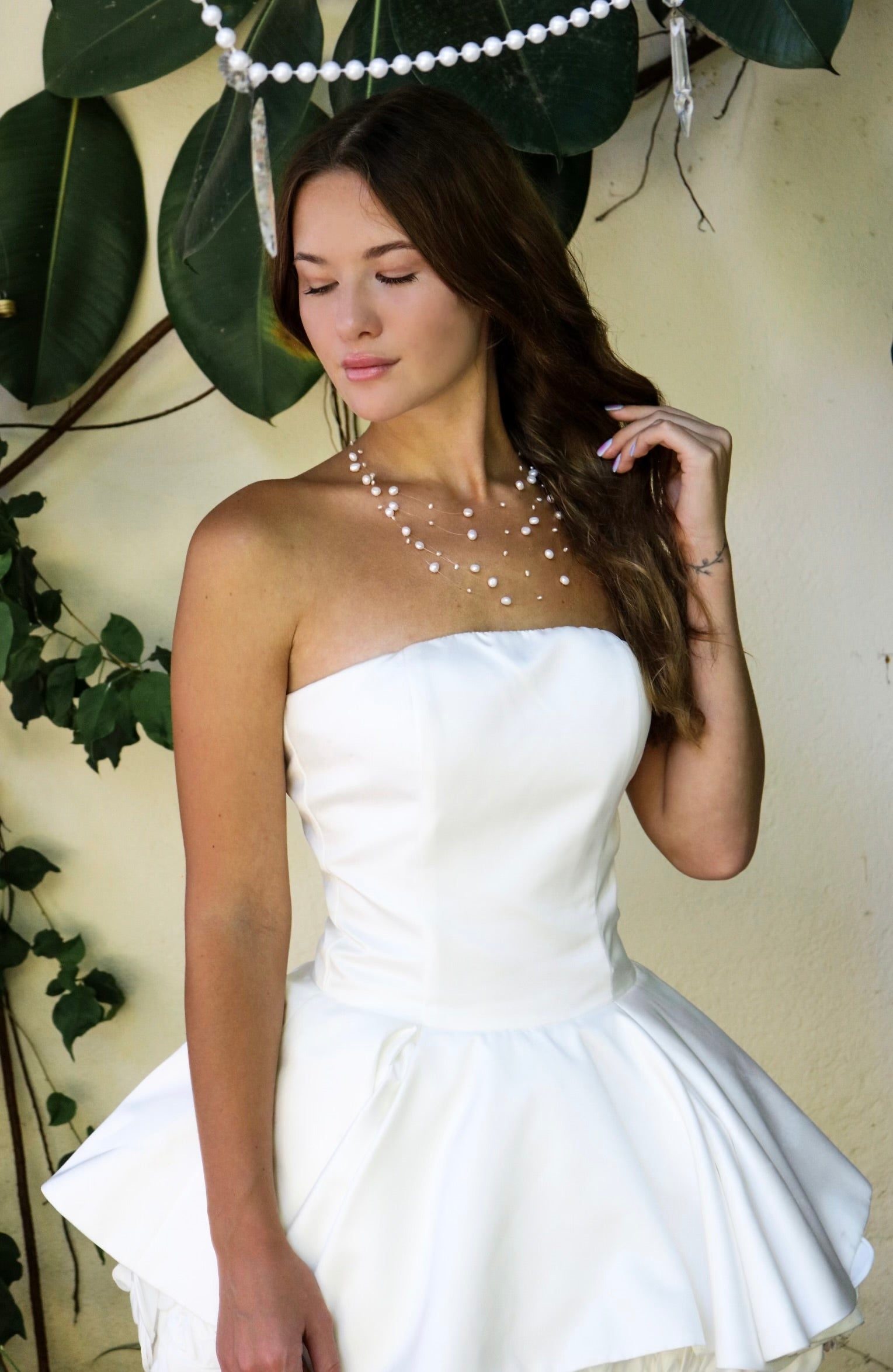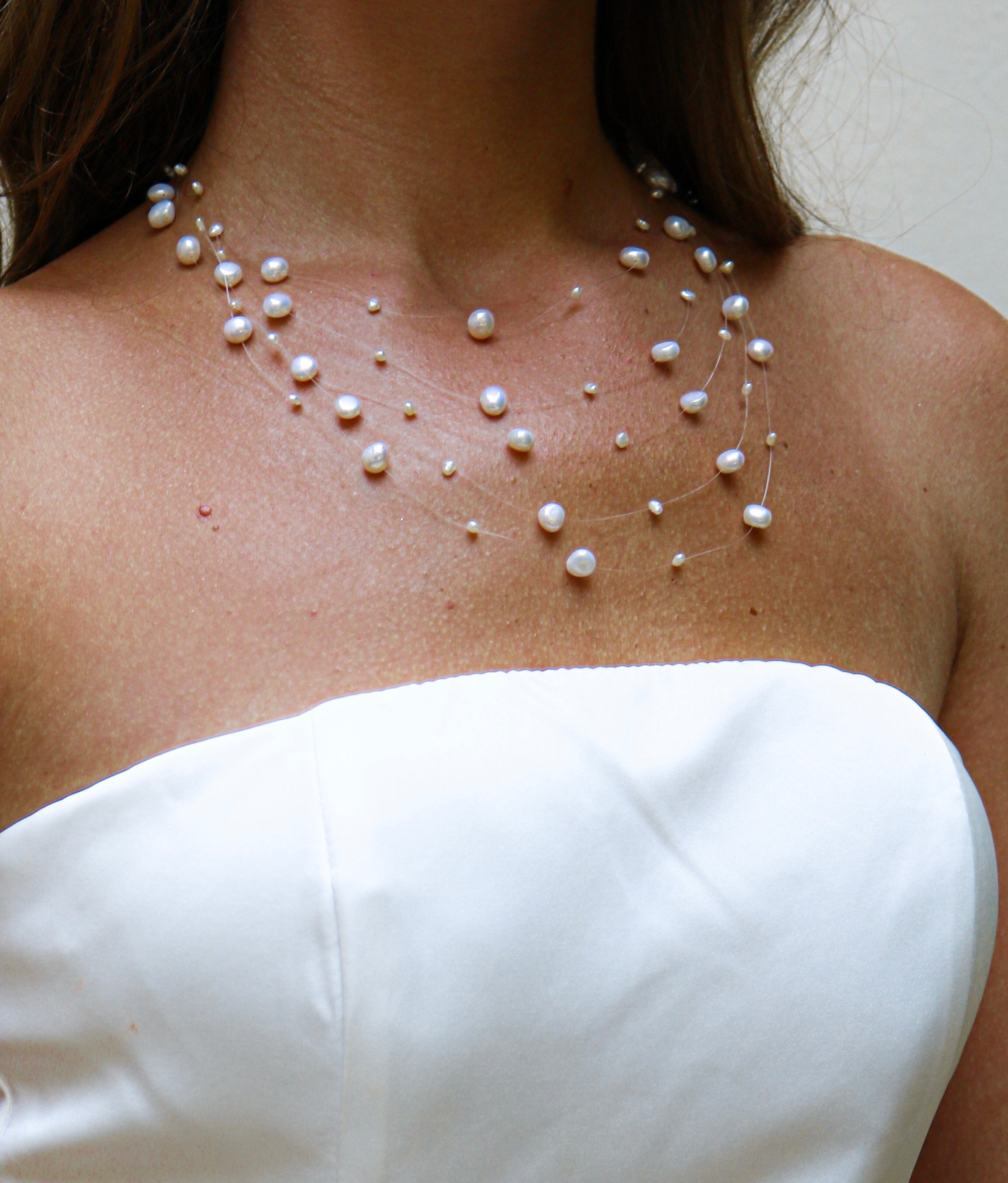Onze handgemaakte natuurlijke zoetwaterparel ketting aan een onzichtbare transparante vislijn zal perfect over uw decolleté vallen voor een onvergetelijke look. Perfect voor de zomer of als bruidssieraad, deze delicate gelaagde ketting met onregelmatige parels kan op verstelbare lengte worden gedragen, als choker of normale lengte. En het beste deel? Het is 100% waterdicht, aangezien de sluiting is gemaakt van verzilverd roestvrij staal.