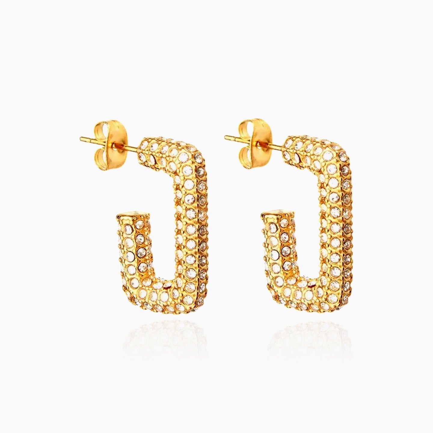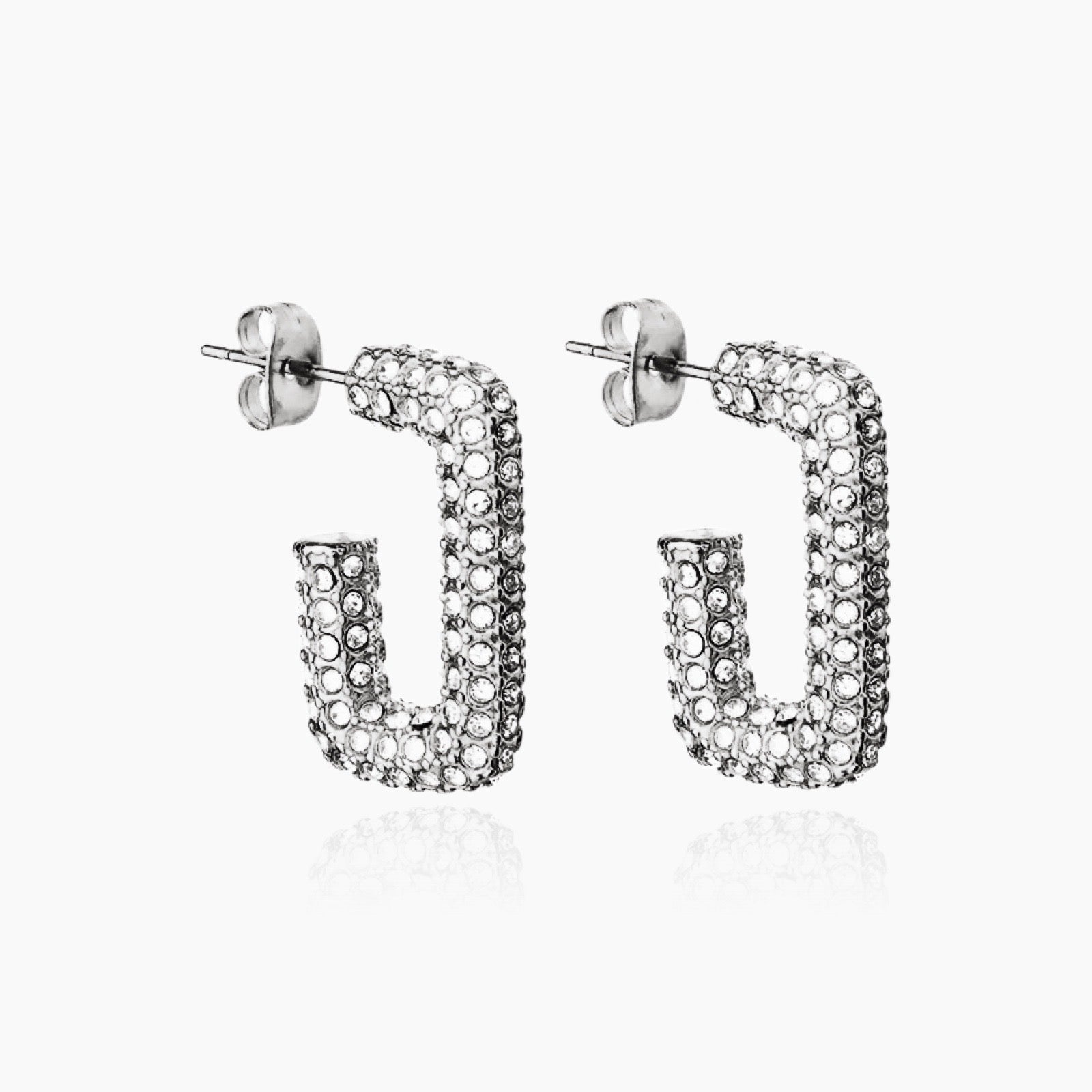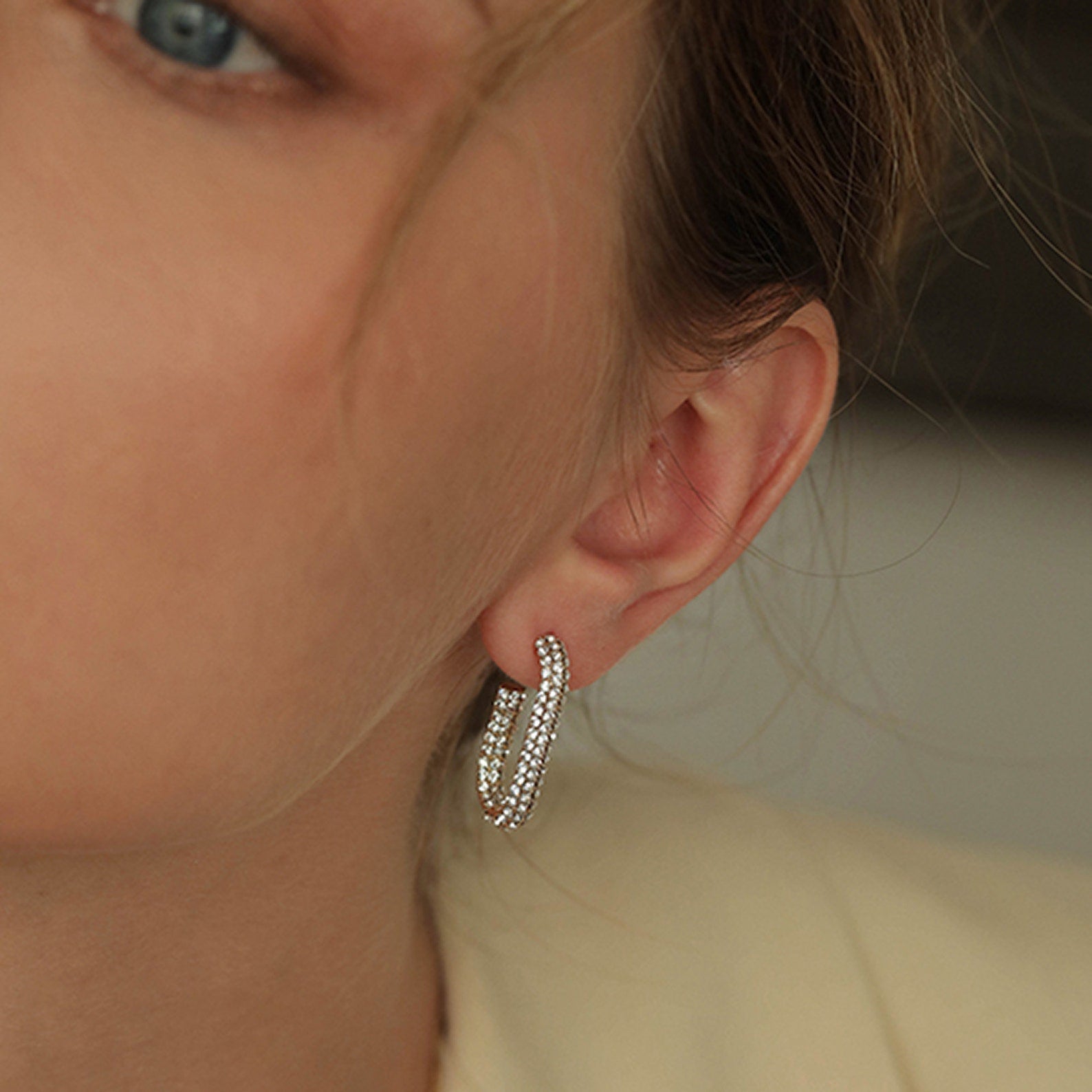 POPULAIRE MEISJE - 18K Goud / Zilver CZ Rechthoekige Hoepel Oorbellen