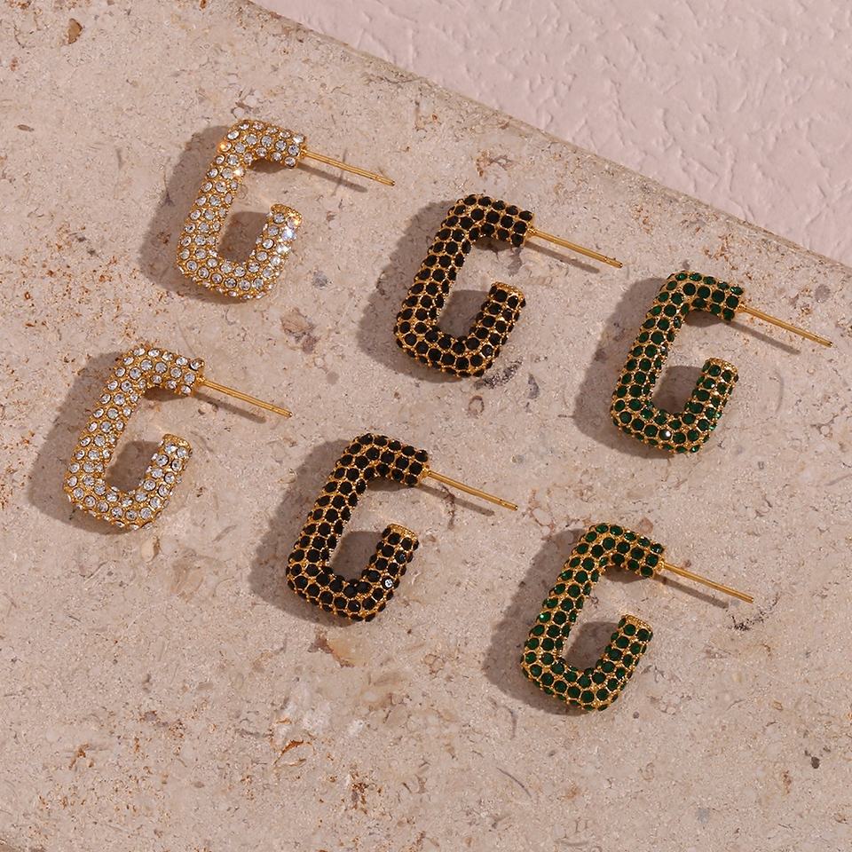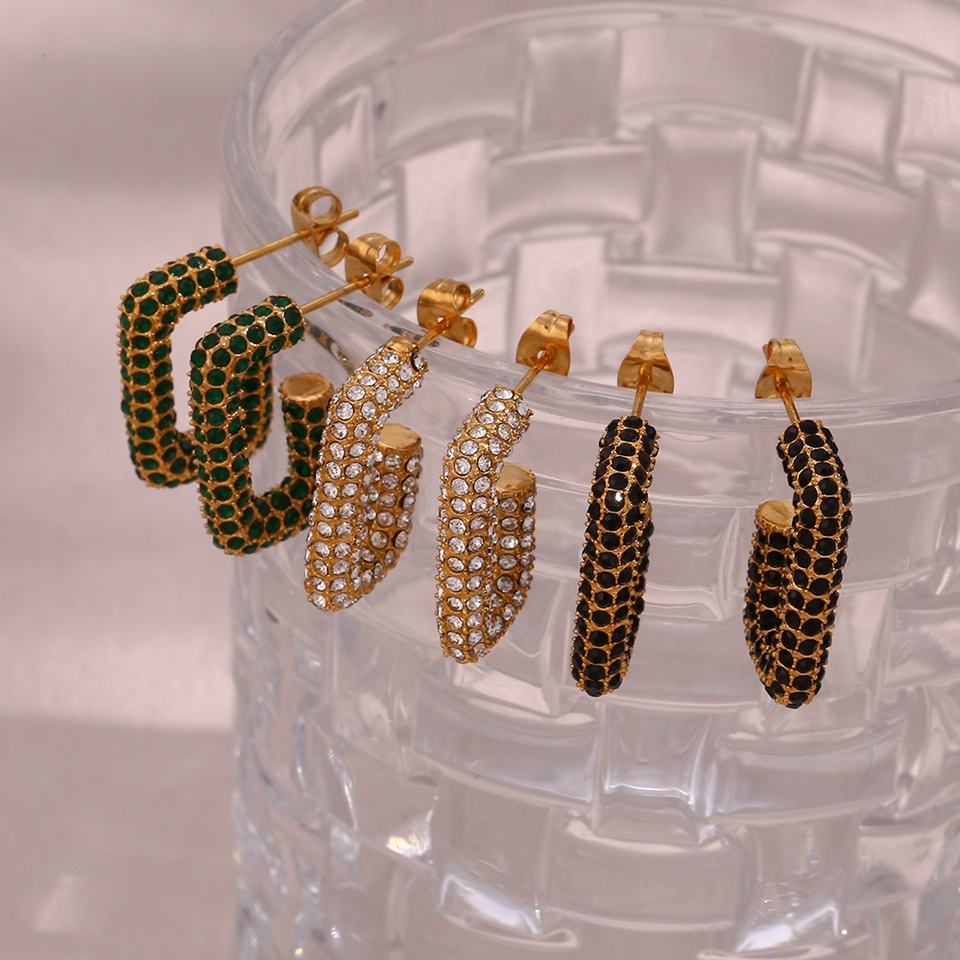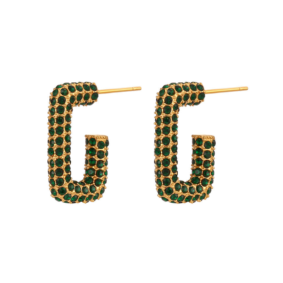 POPULAIRE MEISJE - 18K Goud / Zilver CZ Rechthoekige Hoepel Oorbellen