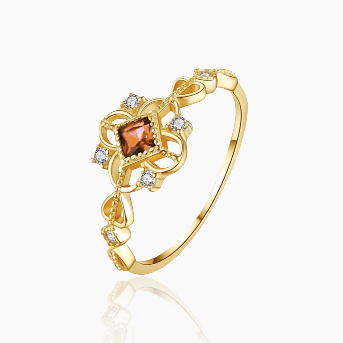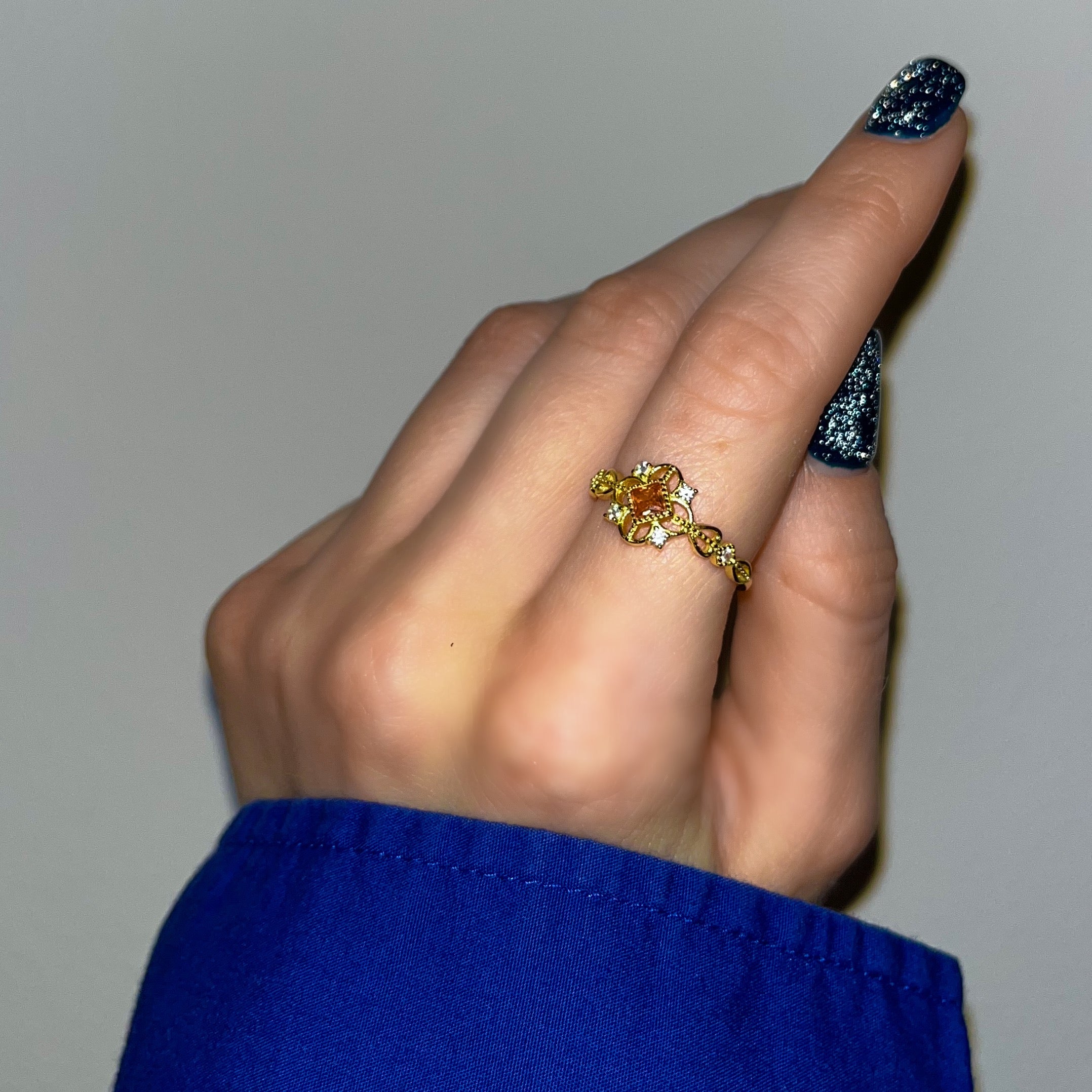 Koninklijk worden is eenvoudig: draag gewoon onze luxueuze oranje stenen ring. Hij is versierd met prachtige kristallen en heeft een pure 925 Sterling Zilveren basis, waardoor hij volledig waterdicht is en voor altijd mooi blijft. De ring past op alle maten omdat hij een verstelbare basis heeft. Deze ring is een verantwoorde keuze: zijn esthetiek is tijdloos, zodat je hem kunt doorgeven aan de volgende generaties. Hij ziet er stijlvol uit en is een perfect cadeau voor iemand speciaal.