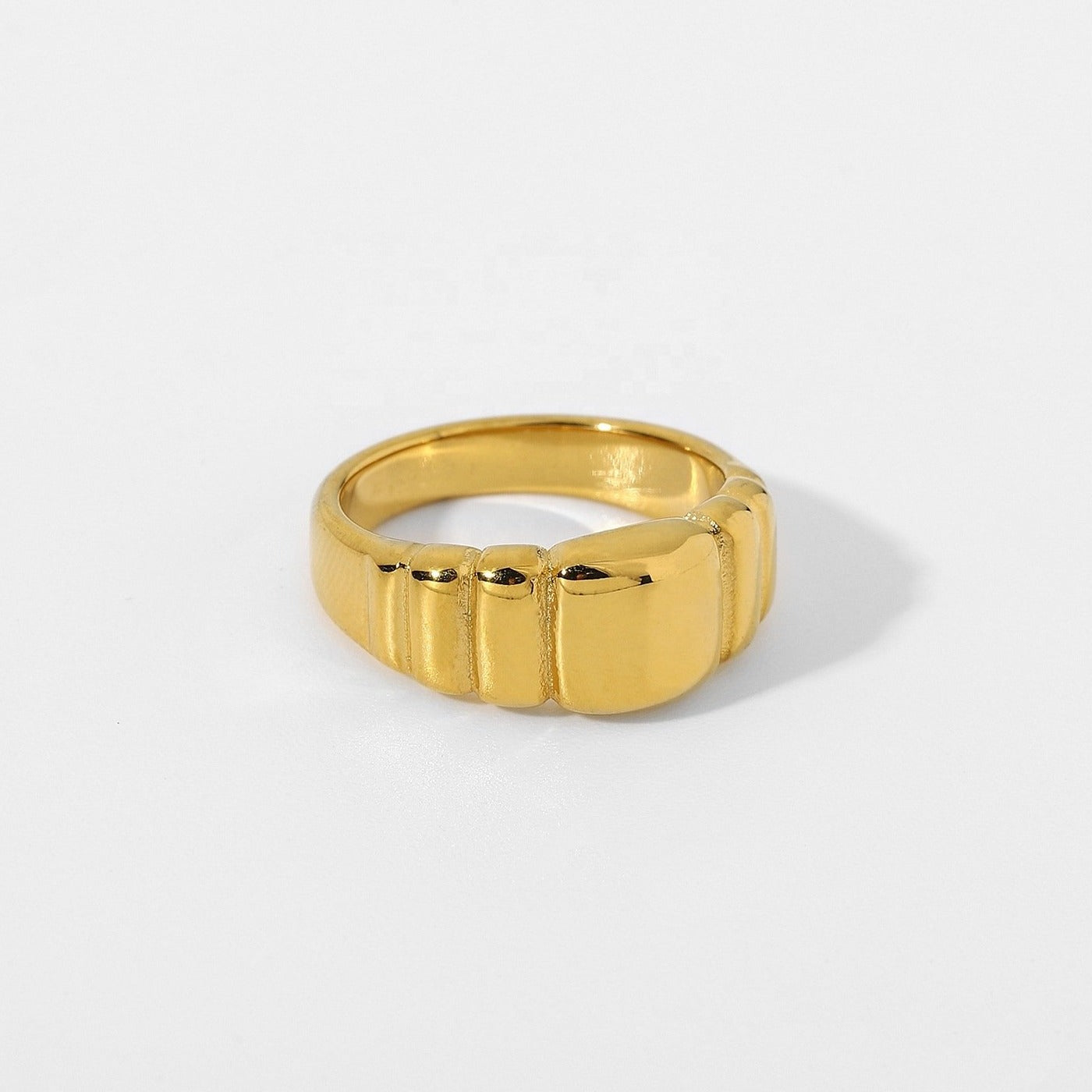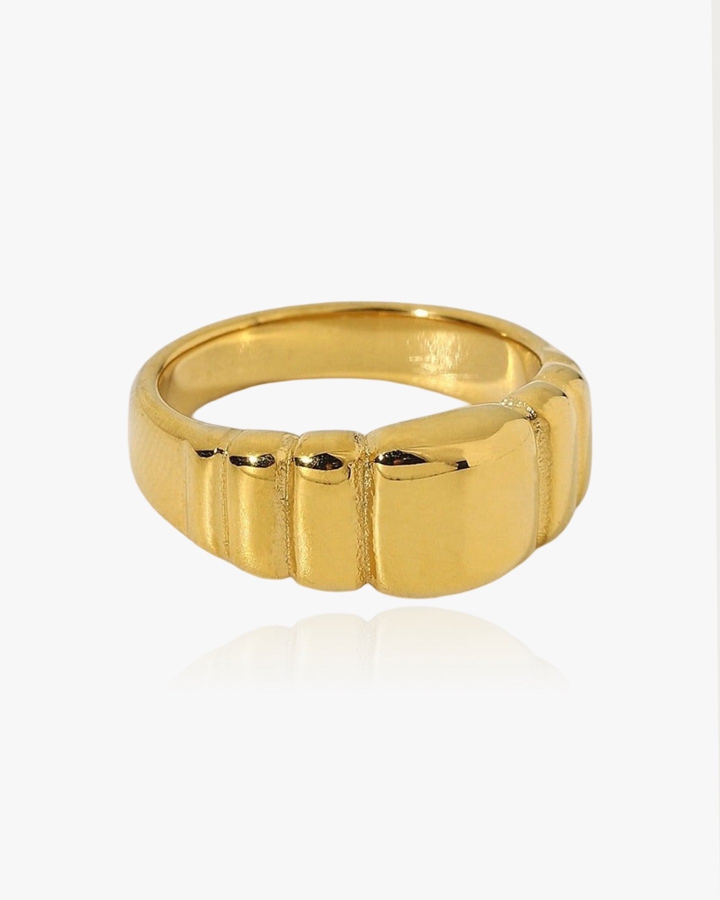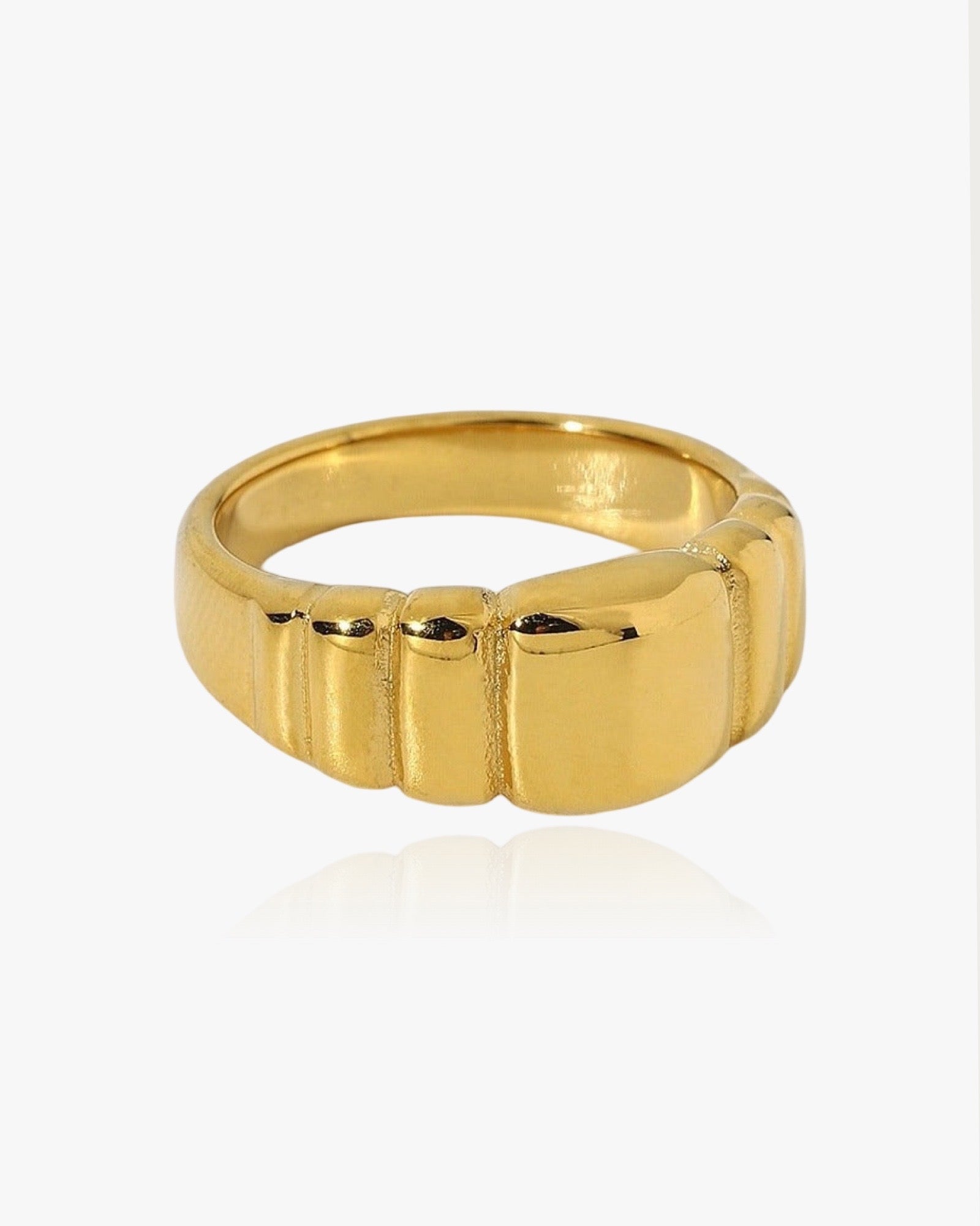 Deze waterdichte Signet ring ziet er onmiskenbaar stijlvol uit: het voegt een elegante twist toe aan al je looks. De lijnen zijn minimalistisch maar hebben een uniek karakter. Het omarmt je vinger perfect en ziet er geweldig uit in combinatie met andere ringen of alleen. Eenvoud is altijd een teken van een uitstekende smaak geweest, nietwaar?