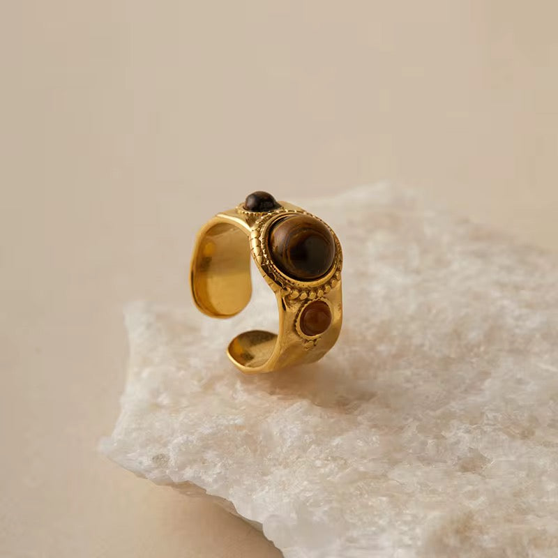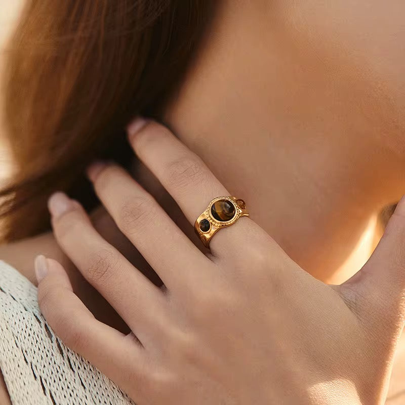 Natuurlijke Tijgeroog Boho Verstelbare Ring