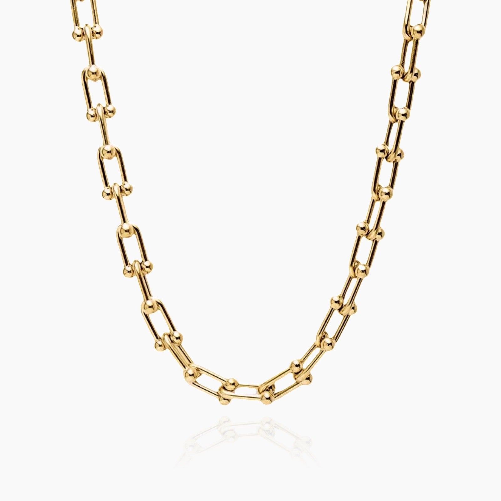 Onze glanzende verhoogde Paardenschoen Ketting ligt perfect over je halslijn en creëert de meest stijlvolle looks. Perfect voor het lagen, deze basis ketting ziet er prachtig uit wanneer hij gecombineerd wordt met een hanger. En het beste deel? Het is 100% waterdicht, omdat het gemaakt is van 18K goud / zilver verguld roestvrij staal.