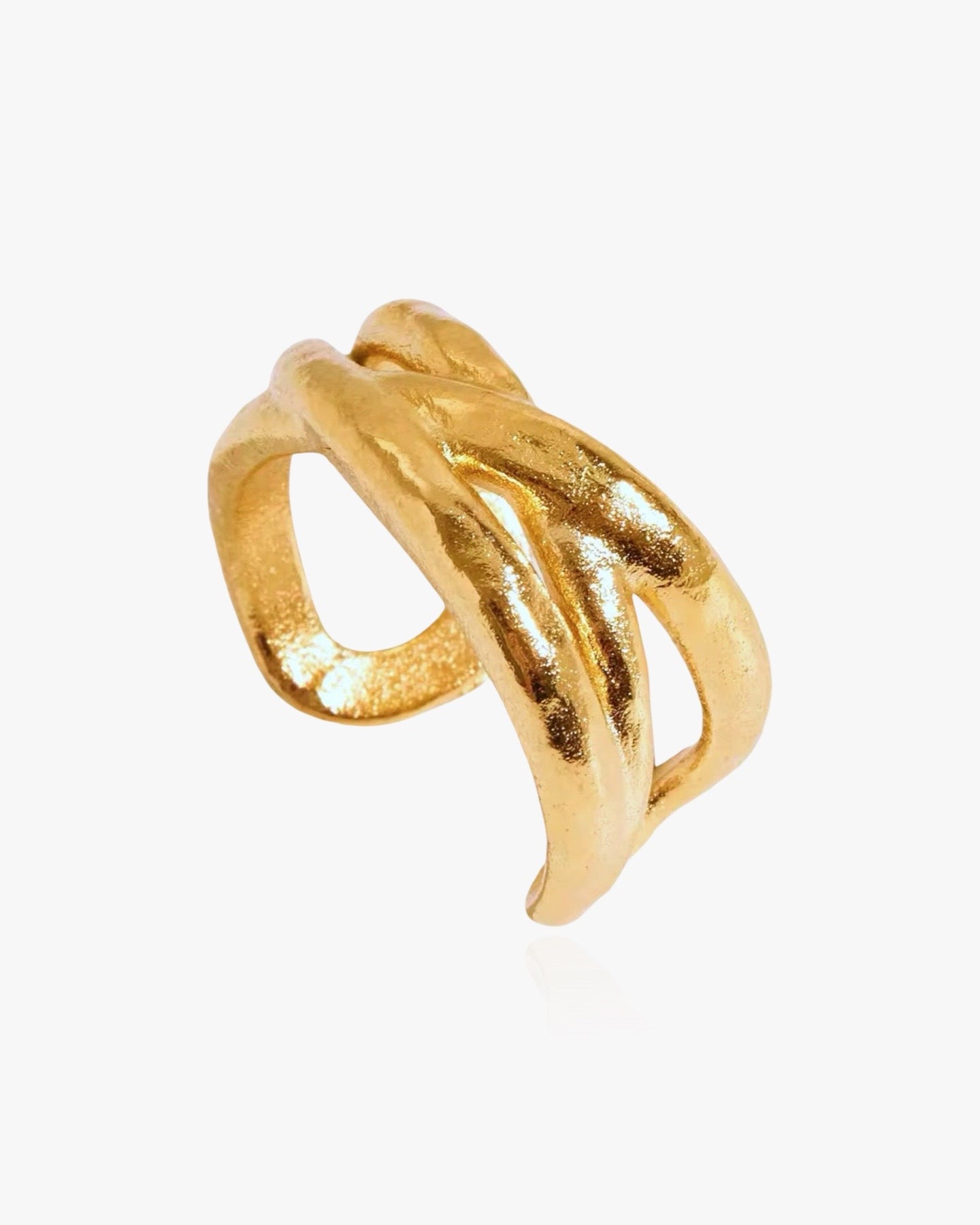 Deze maxi-formaat waterdichte ring met organische vorm doet ons denken aan natuurlijke vormen. Draag deze prachtige drievoudige ring gestapeld, alleen of gemixt met je andere ringen - de mogelijkheden zijn eindeloos. Deze getextureerde wrap ring met kristal is een perfect cadeau voor iemand speciaal, omdat de maat verstelbaar is.