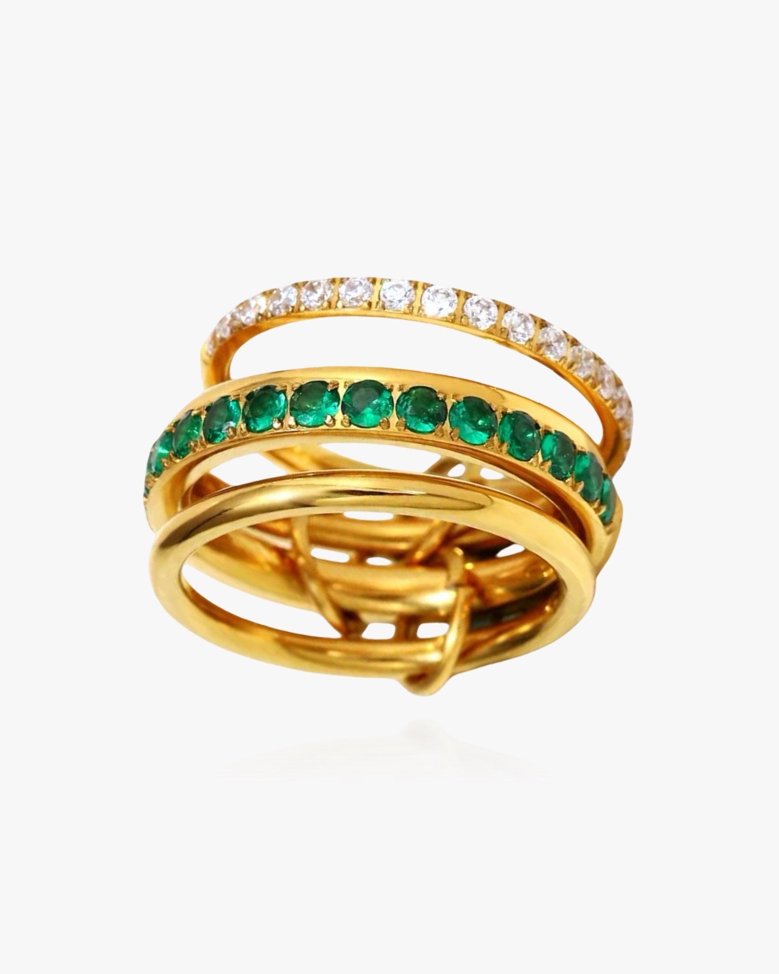 VERBINDING: Drievoudige Smaragdgroene Stapel Fidget Ring