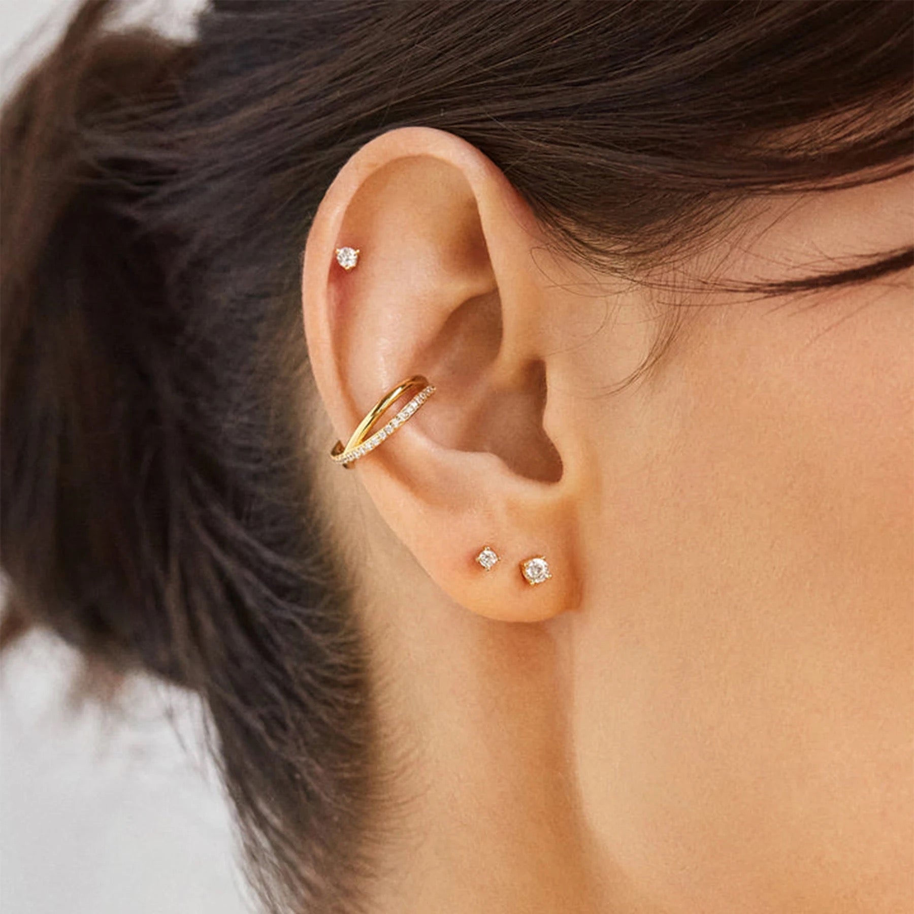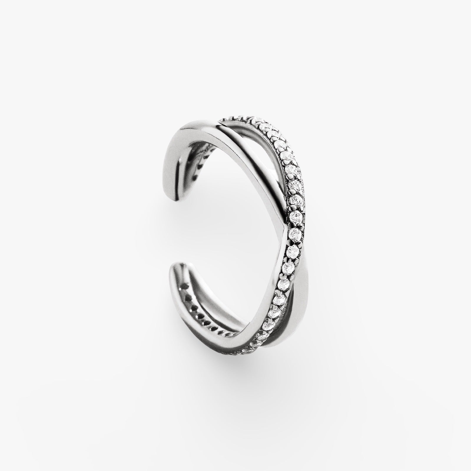 X-Shape Pave Crystal Cuff Earring: Fijne Dubbele Cuff