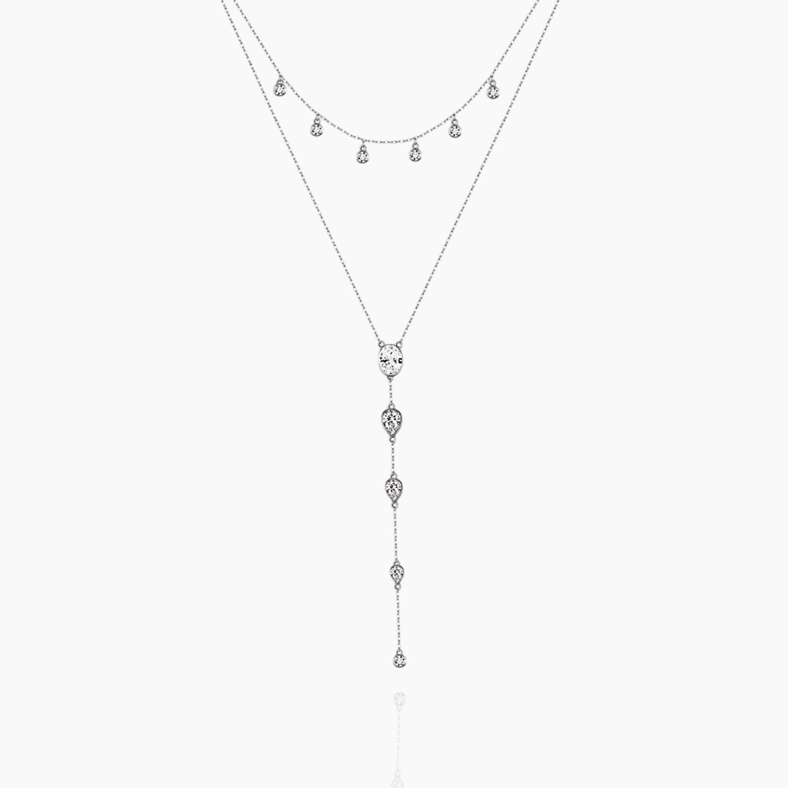 Fijne Y-vormige ketting met kristallen in sterling zilver