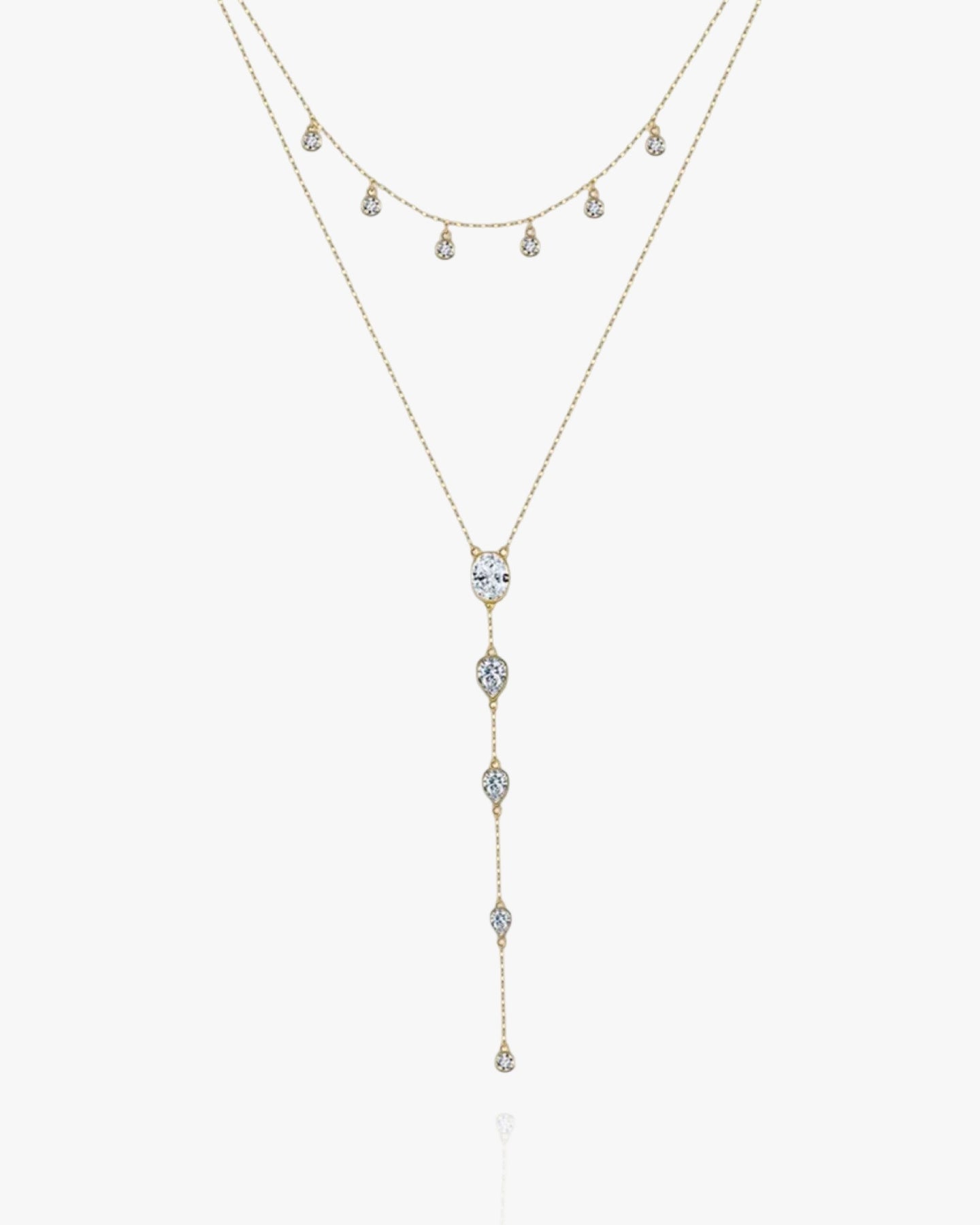 Handgemaakt product. Onze delicate, fijne Y-vormige ketting herinnert ons aan gelukkige dagen. Het is antikras, waterdicht en is versierd met glinsterende CZ-kristallen. Dit stuk is een geweldige keuze voor trouwjuwelen of complementeert een delicate cocktailparty-look. Het materiaal van de ketting is hoogwaardig 925 sterling zilver, bedekt met 18K goud.