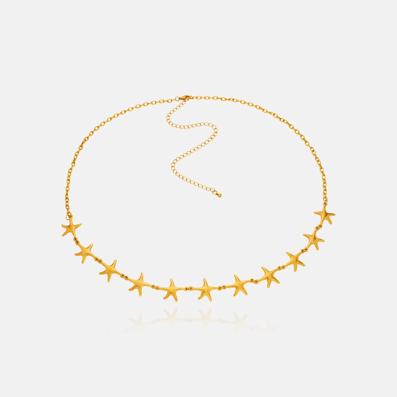 Onze stijlvolle en elegante zeester buikketting heeft een glinsterende 18K vergulde ketting met sterren en is verstelbaar in maat. Het zal er geweldig uitzien bij elke crop top of zwemkleding en je look direct verfraaien. Het kan ook over kleding gedragen worden om een twist geïnspireerd door de jaren 2000 aan je outfit toe te voegen. Het zal perfect om je taille vallen en je favoriete zomermaatje worden.