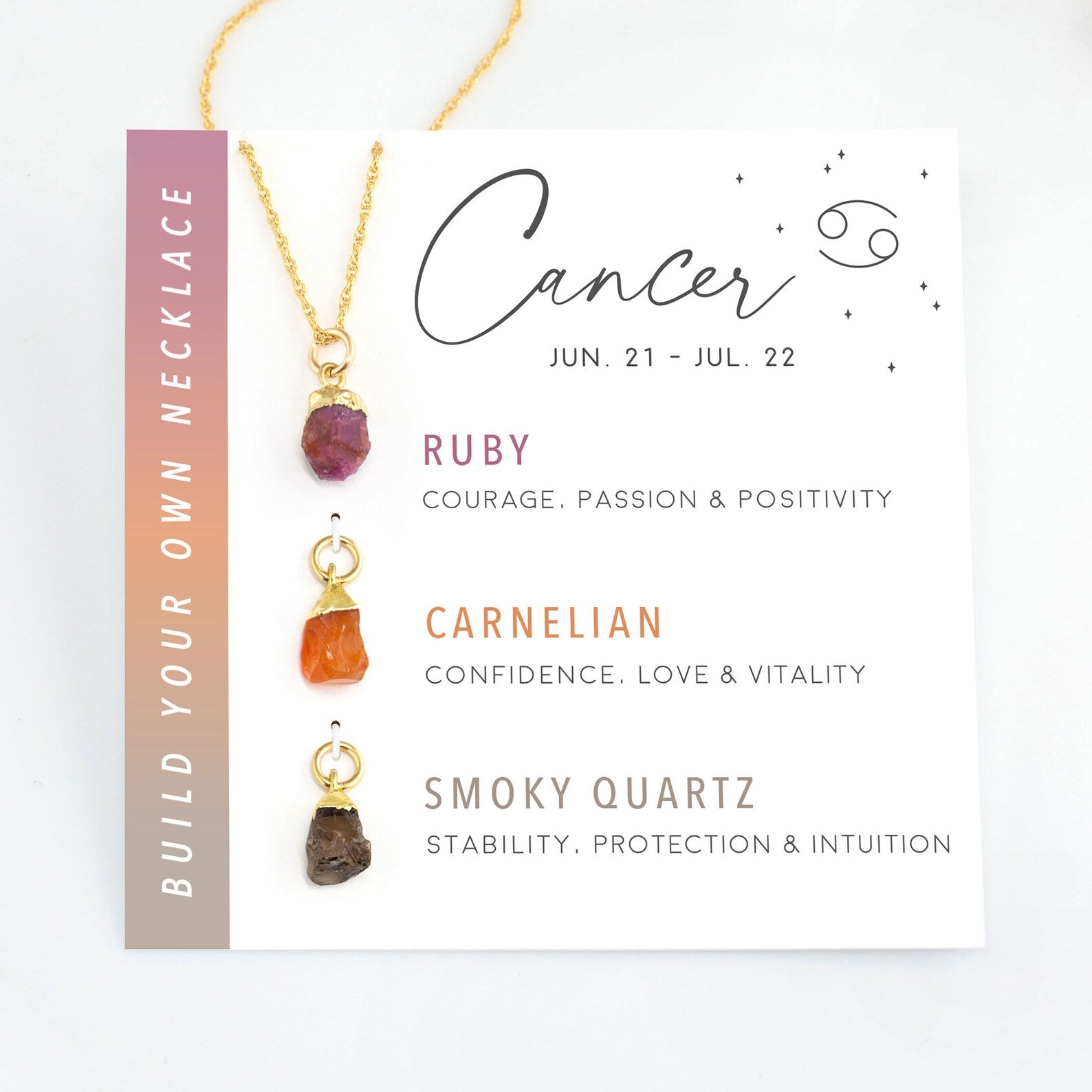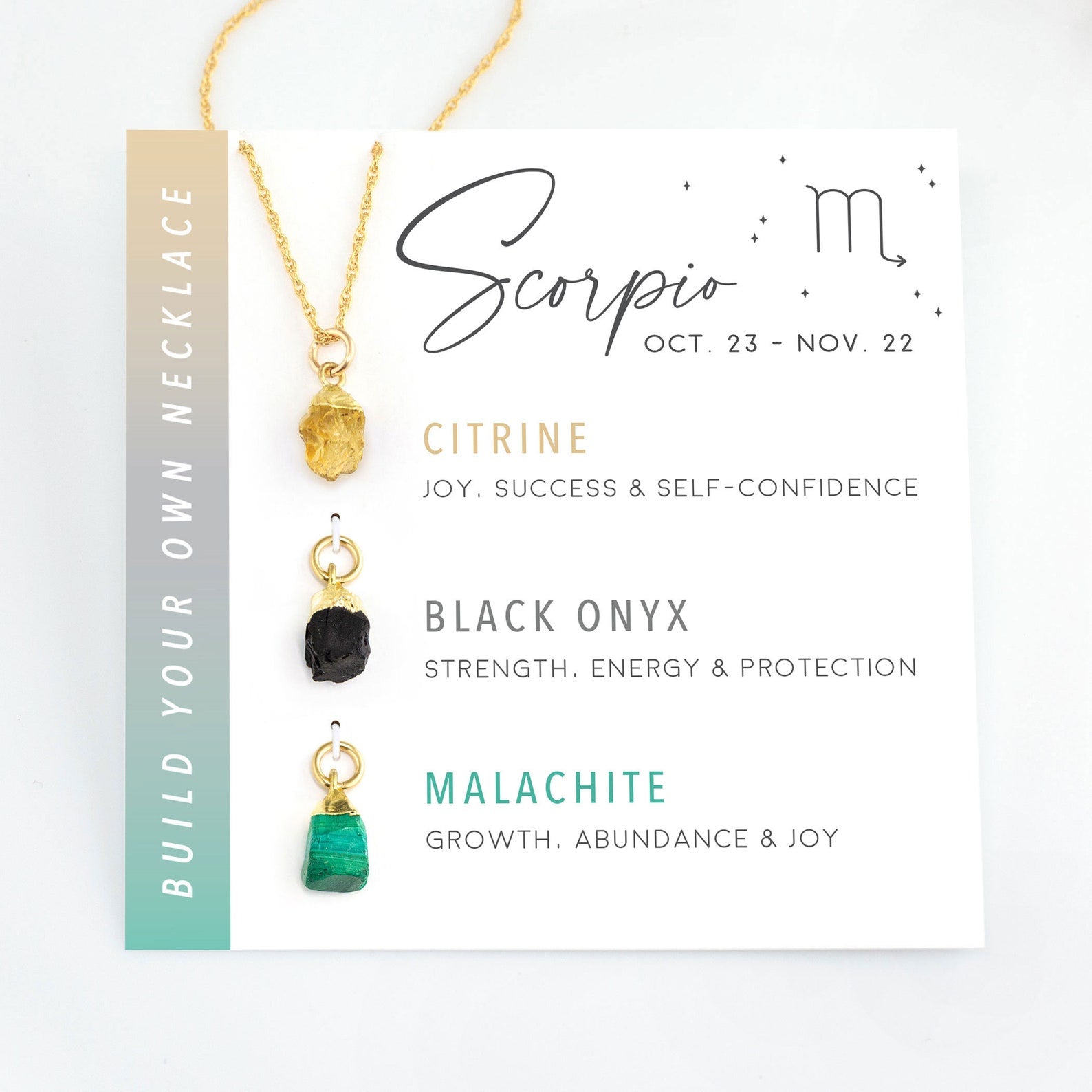 Krijg geluk met je sterrenbeeld geboortesteen ketting, met 3 authentieke edelstenen met mooie betekenissen. Je kunt je eigen ketting maken door de kristallen bedels op en van de ketting te schuiven. Kostbare rauwe stenen kunnen individueel of samen worden gedragen, afhankelijk van je persoonlijke voorkeur. Deze kettingen worden verpakt met bijpassende kaarten met informatie over elke geboortesteen. Ze zijn klaar om cadeau te geven!